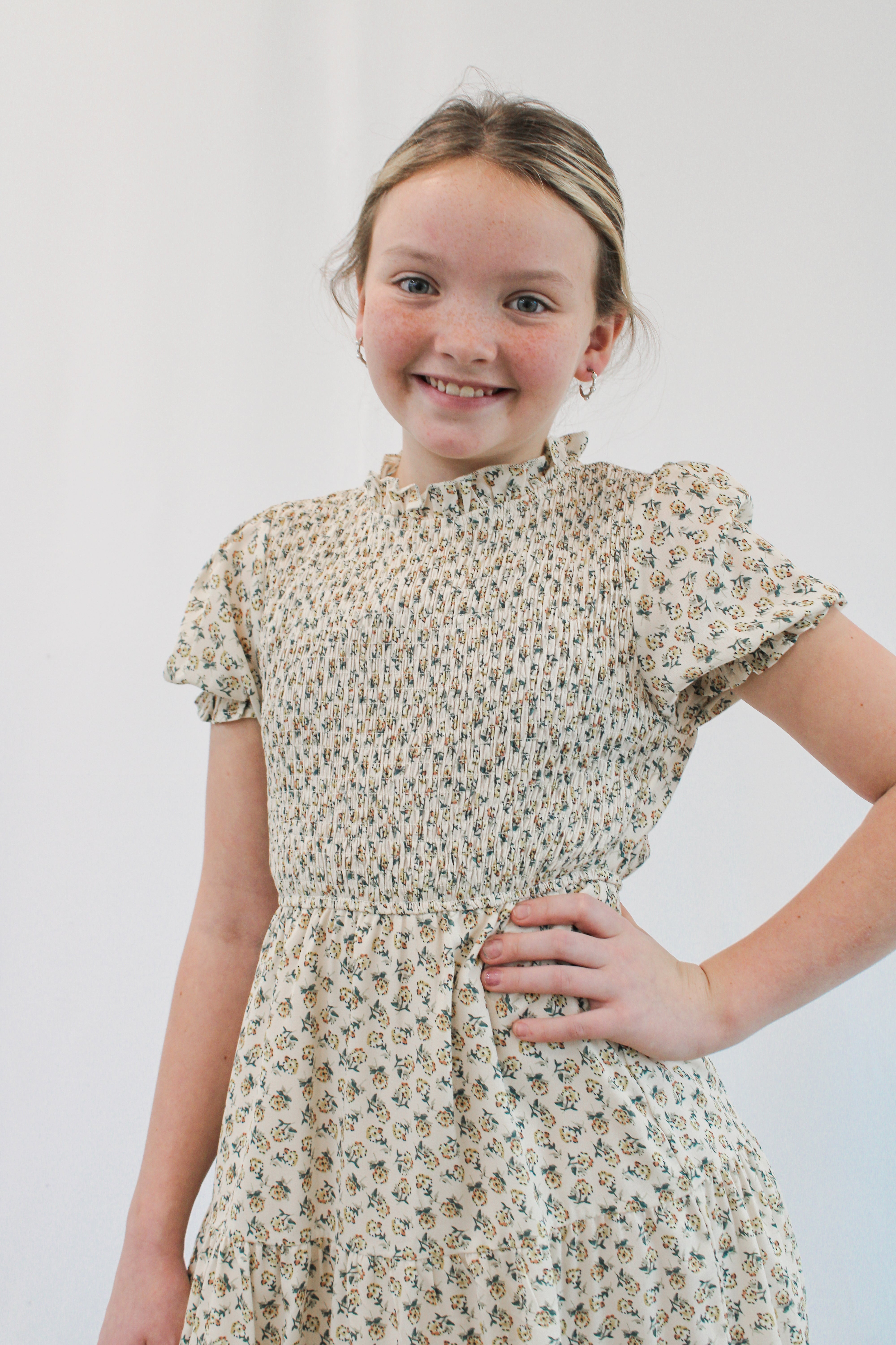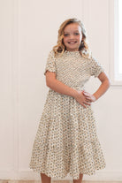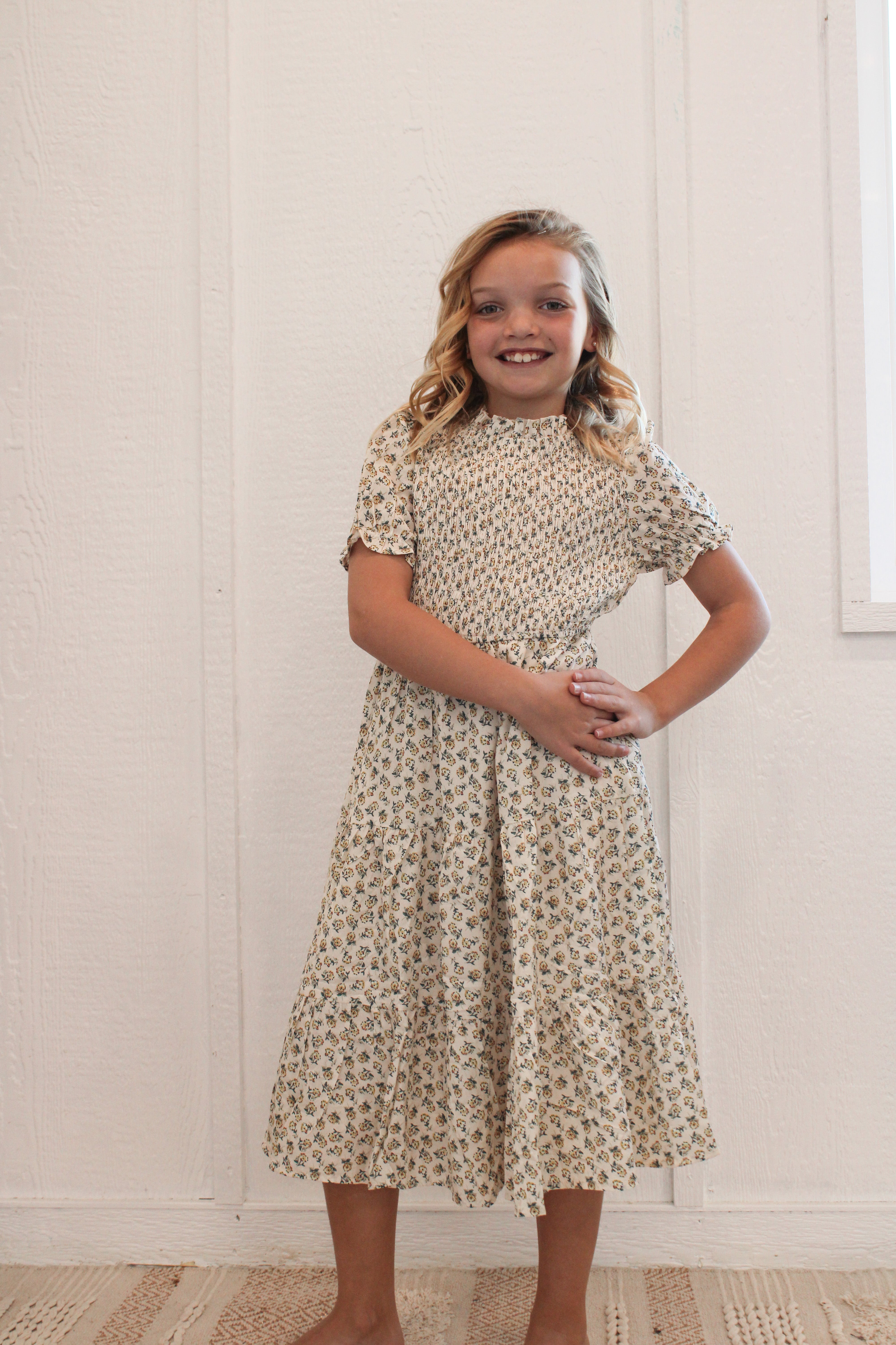 MAESA GIRLS SMOCKED TIERED MIDI DRESS