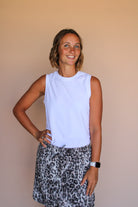Stay active and stylish in our MISSY DOLPHIN SKORT! This playful piece features a comfortable drawstring waistband and built-in knit shorts for maximum coverage while you move. The rounded side hem adds a flirty touch to your casual wardrobe. Perfect for errands, brunch, or beach days - just pull on and go!