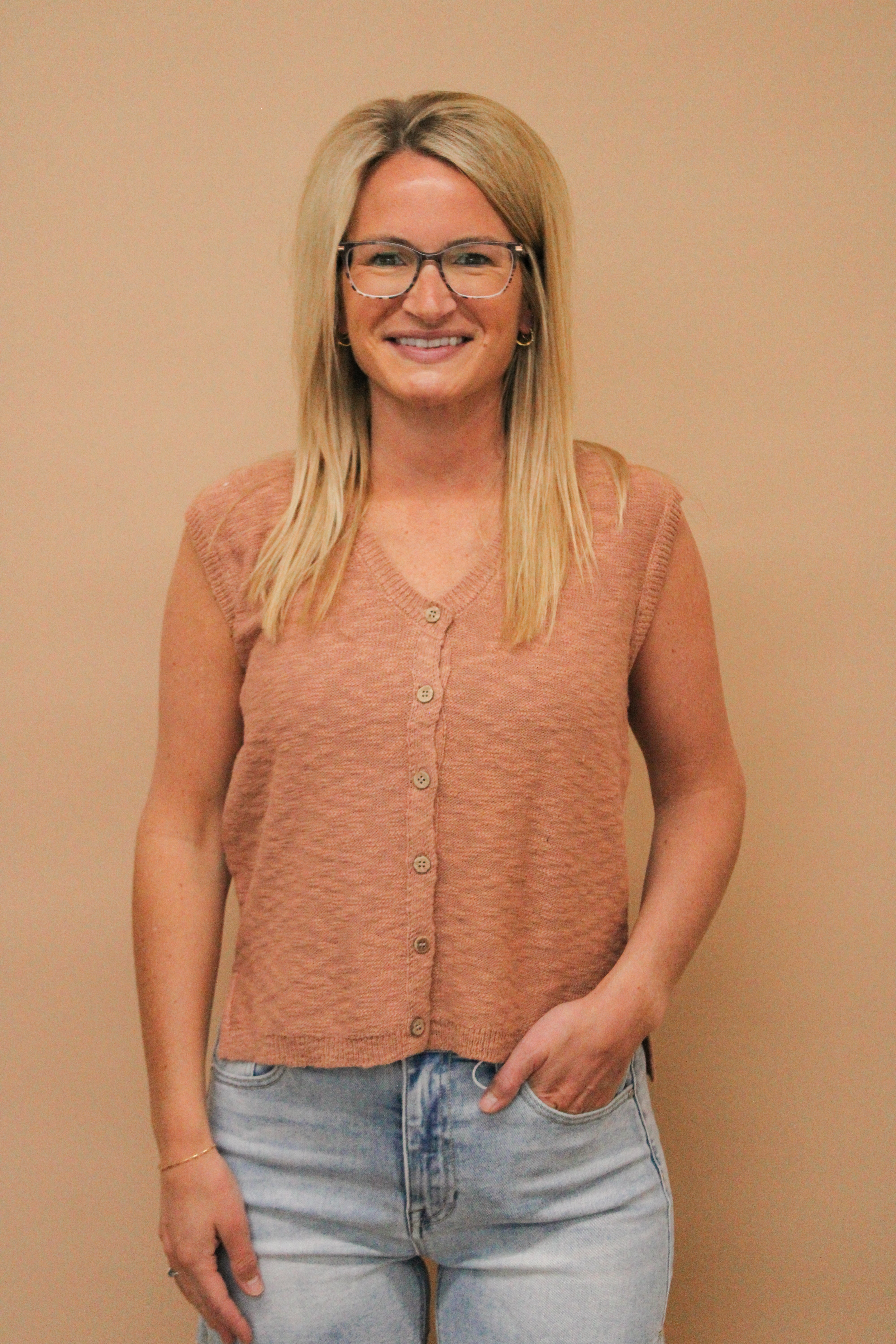 Get ready to layer up with the Misty Knit Button Up Sweater Vest! Made with lightweight cotton, this sweater vest is perfect for chilly days. Its sleeveless design and button down closure make it versatile - wear it as a sweater or a tank top! Stay cozy and stylish with this must-have addition to your wardrobe.