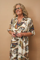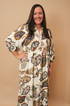 Step into vibrant style with the Ryken Reg/Curvy Paisley Midi Dress. Featuring a bold paisley print and lively colors, this dress brightens your wardrobe effortlessly. The playful 3/4 sleeves add a flirty touch, while the midi length offers a flattering silhouette for any occasion. Perfect for turning heads and feeling fabulous all day long!