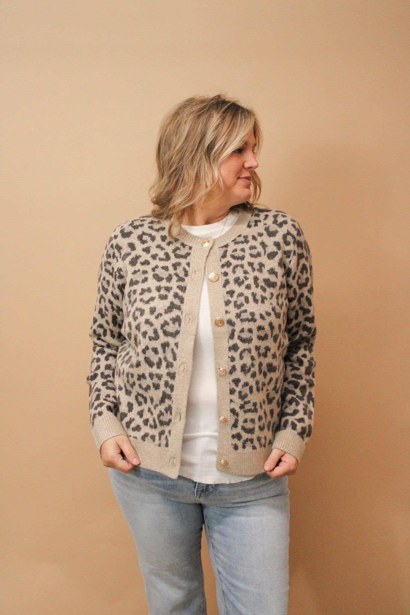 Add a wild twist to your wardrobe with this playful leopard print cardigan. Featuring bold spots and a classic button-front design, it’s perfect for layering on cool days while turning heads wherever you go. Soft and cozy, this cardigan lets you embrace your fierce side with effortless style.