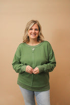 Cozy meets cute in this long-sleeve French terry top, featuring ribbed contrast and charming stitching details. Perfect for adding a playful twist to your everyday look while keeping you comfy and stylish all day long.
