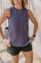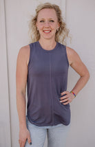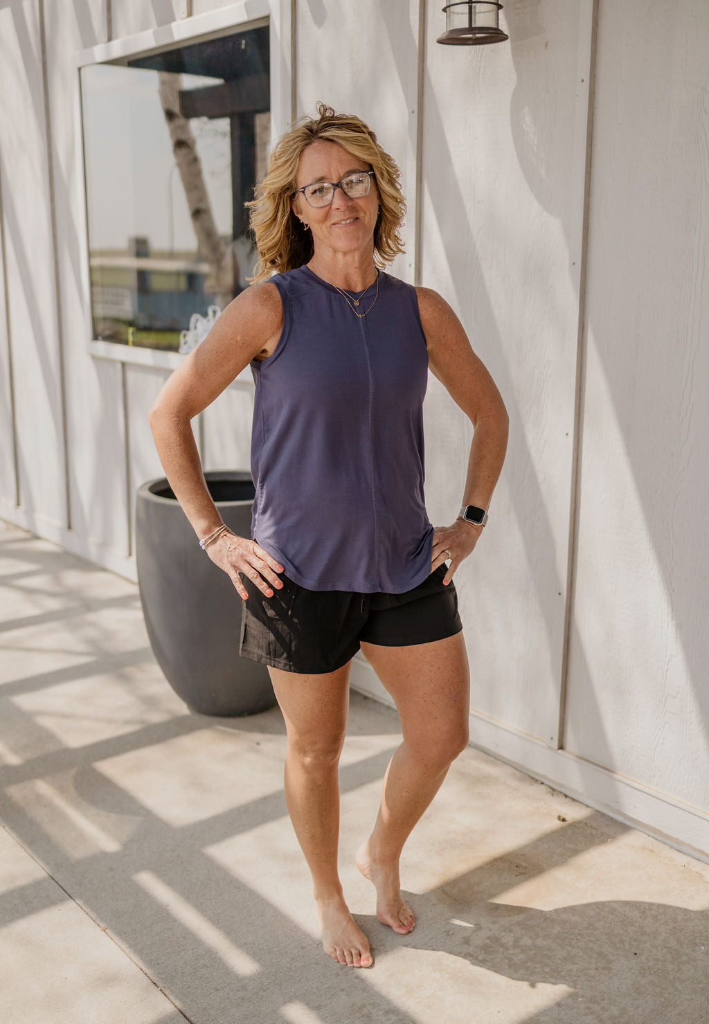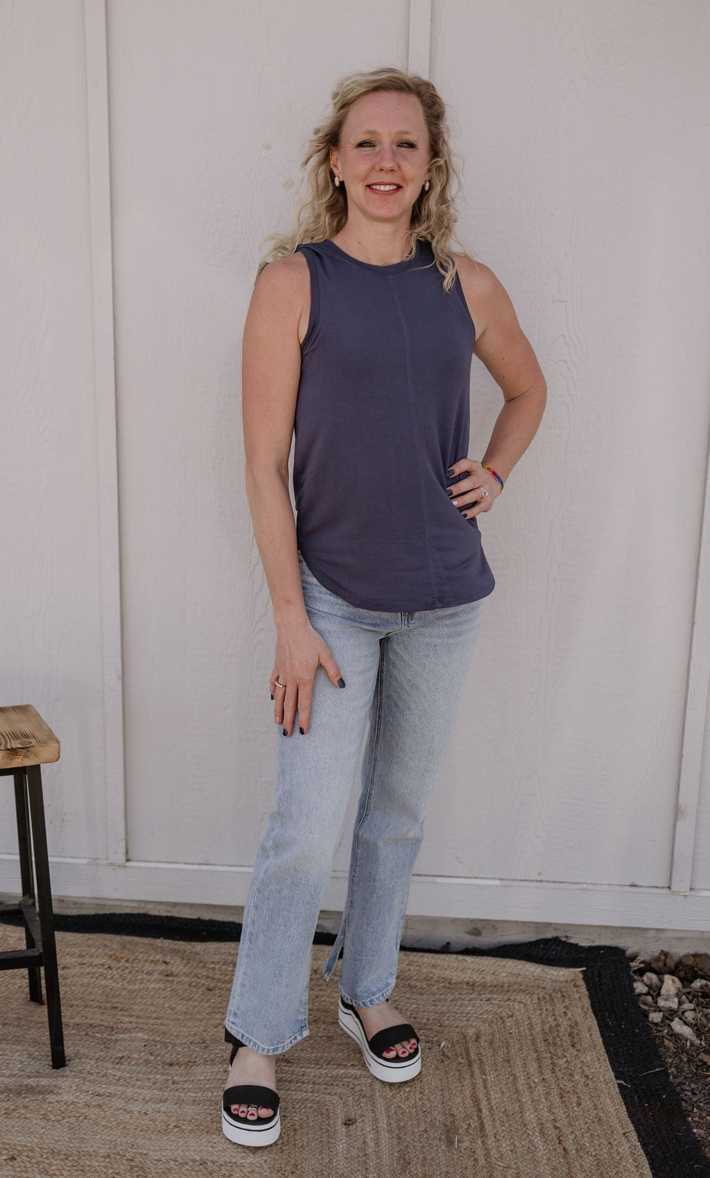Perfect casual tank top paired under a zip up sweatshirt and shorts!
