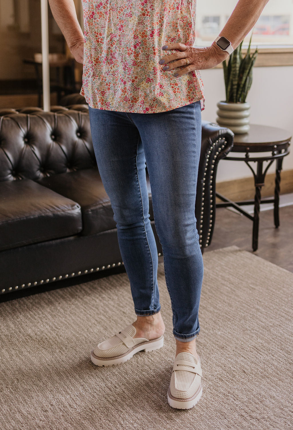 High waisted medium washed skinny jeans