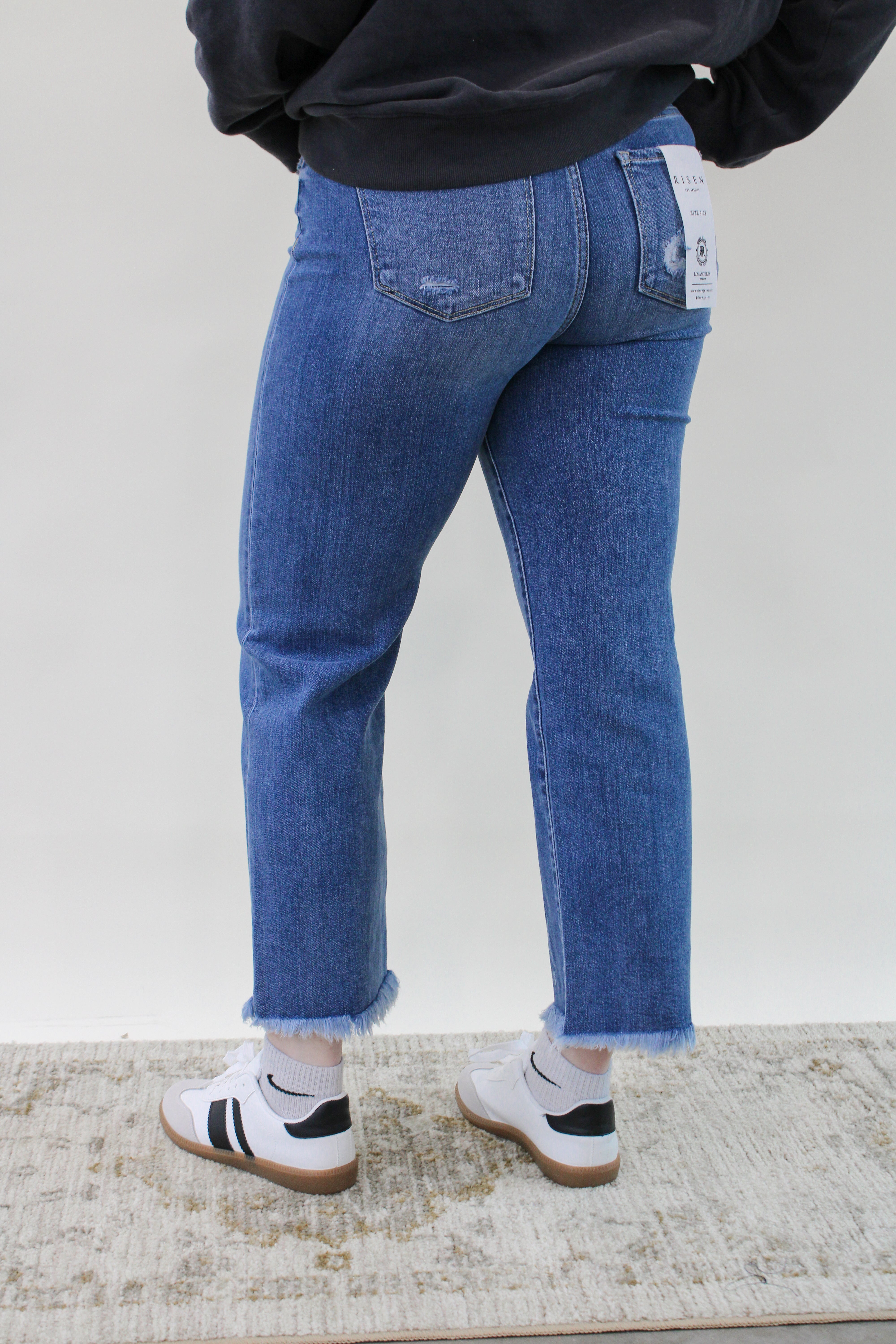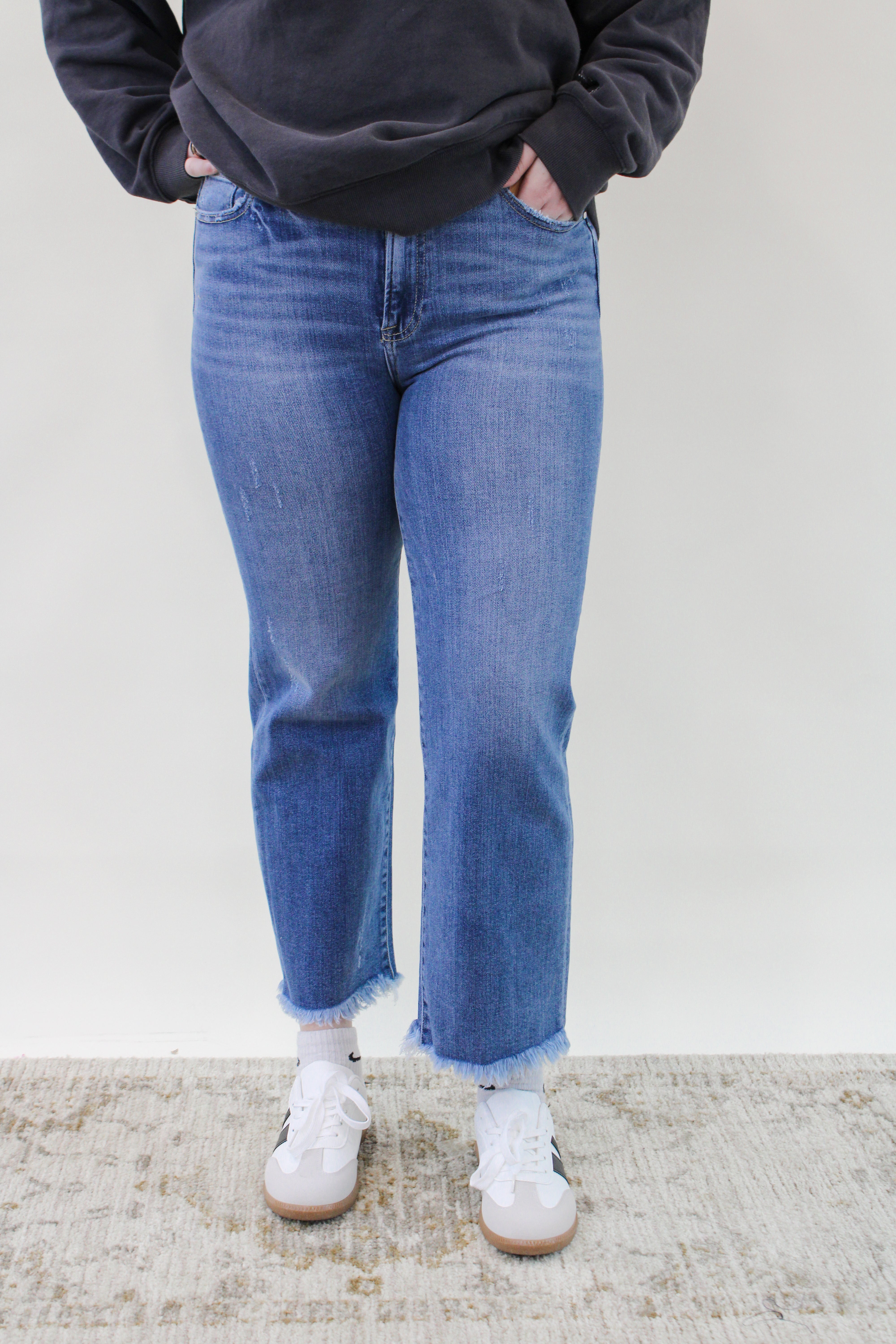 Get ready to elevate your denim game with the MONITA HR CROP STRAIGHT JEANS! These high-rise jeans feature a trendy crop with frayed hem, giving you the perfect balance of style and comfort. With a rise of 11" and inseam of 27 1/2", these jeans will flatter your figure. Whether you're dressing up or dressing down, these jeans are a must-have in your wardrobe.