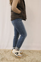 Add some vintage flair to your wardrobe with the MR Vintage Wash Boyfriend jeans. The 93% cotton, 5% polyester, and 2% spandex blend offers both comfort and stretch, perfect for everyday wear. Featuring a flattering curvy fit and cuffed ankles, these jeans will elevate any look. (Note: FR: 11 3/4 and inseam of 29 inches when cuffed, 32 inches when uncuffed.)