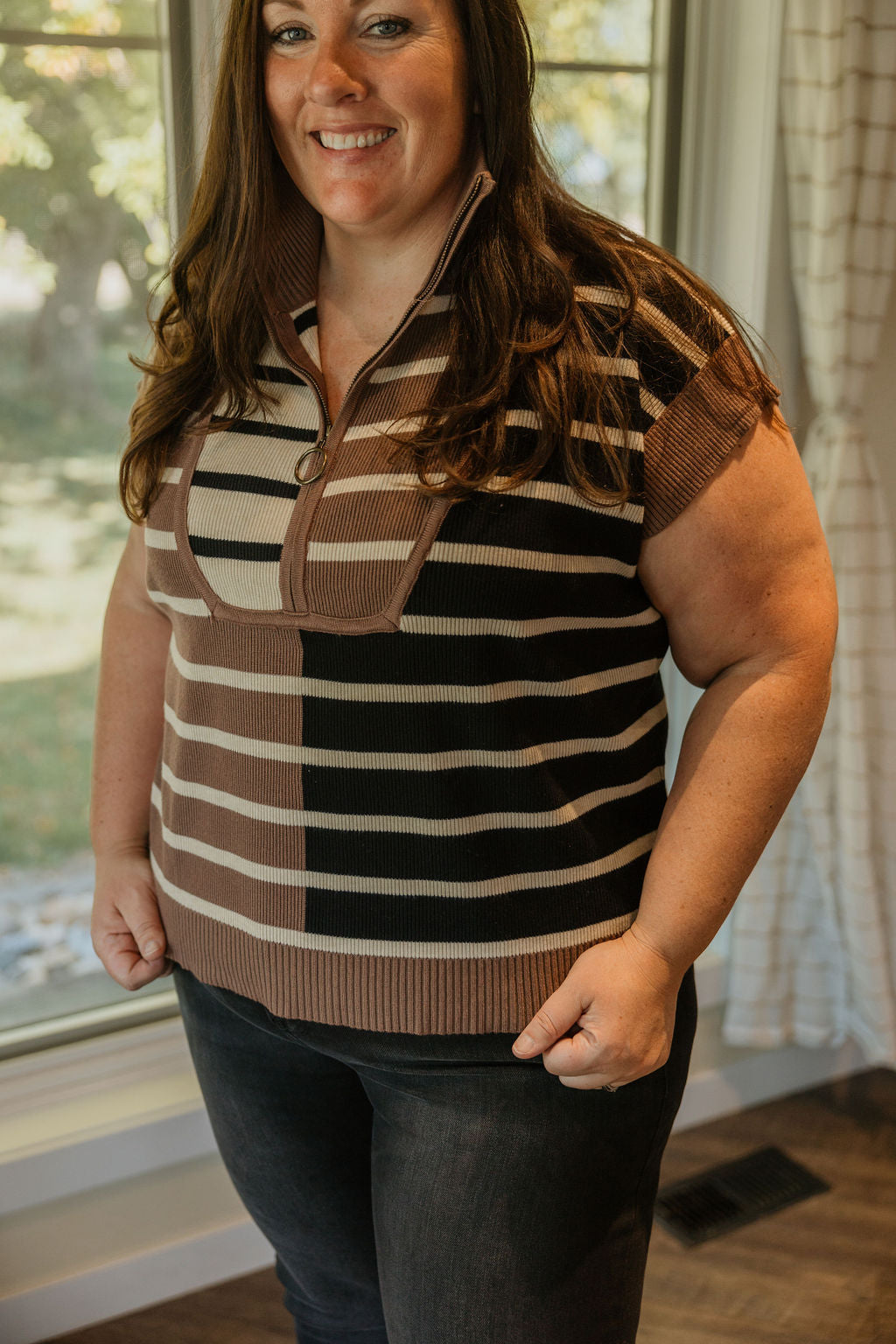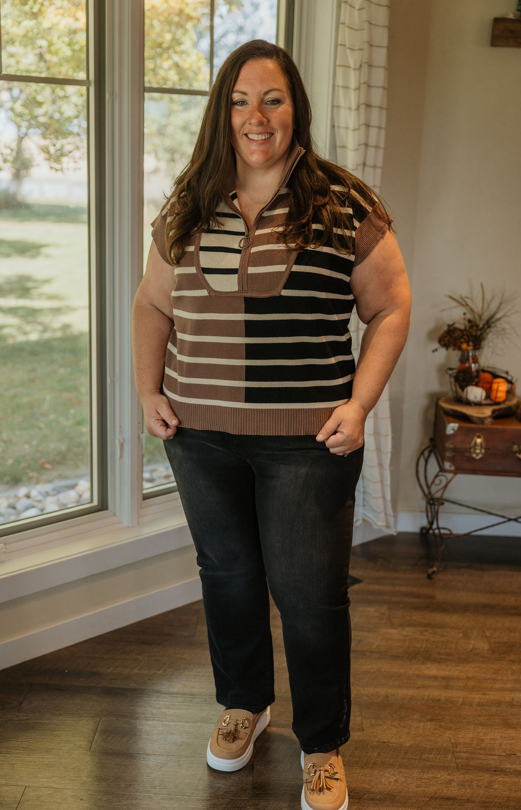 DACIA REG/CURVY STRIPE CAP-SLEEVE SWEATER
