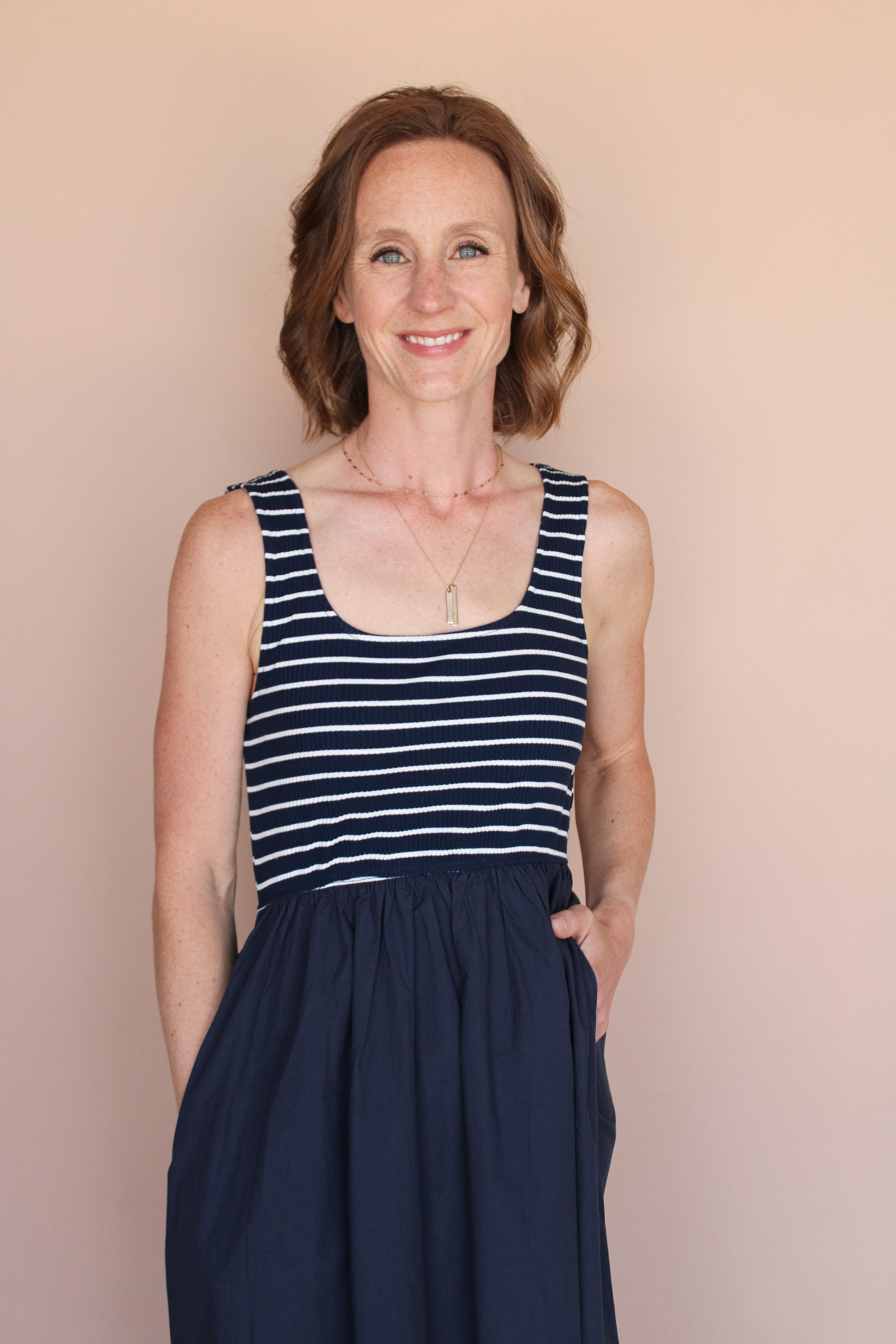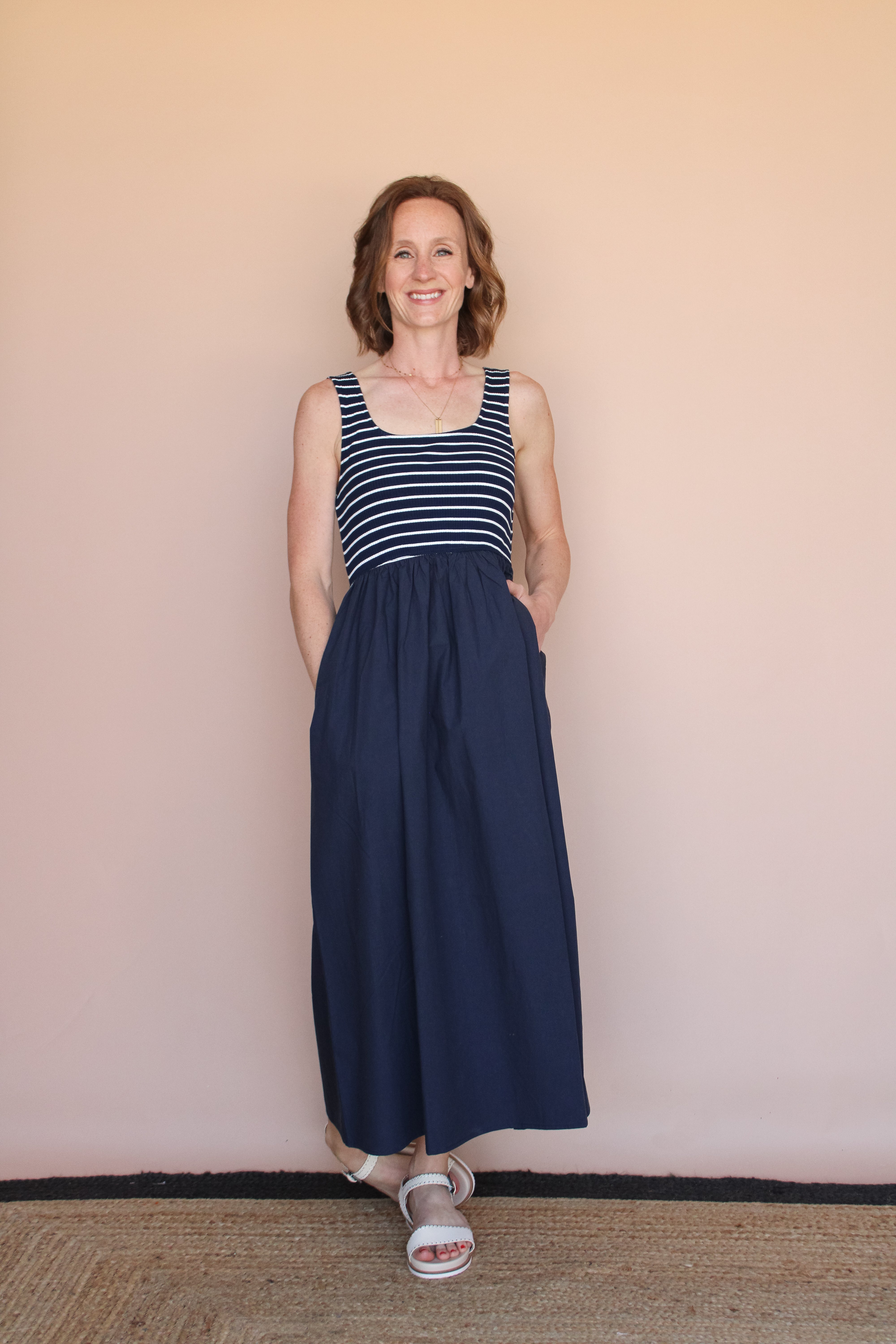 JAX MIXED MEDIA STRIPED MIDI DRESS