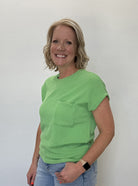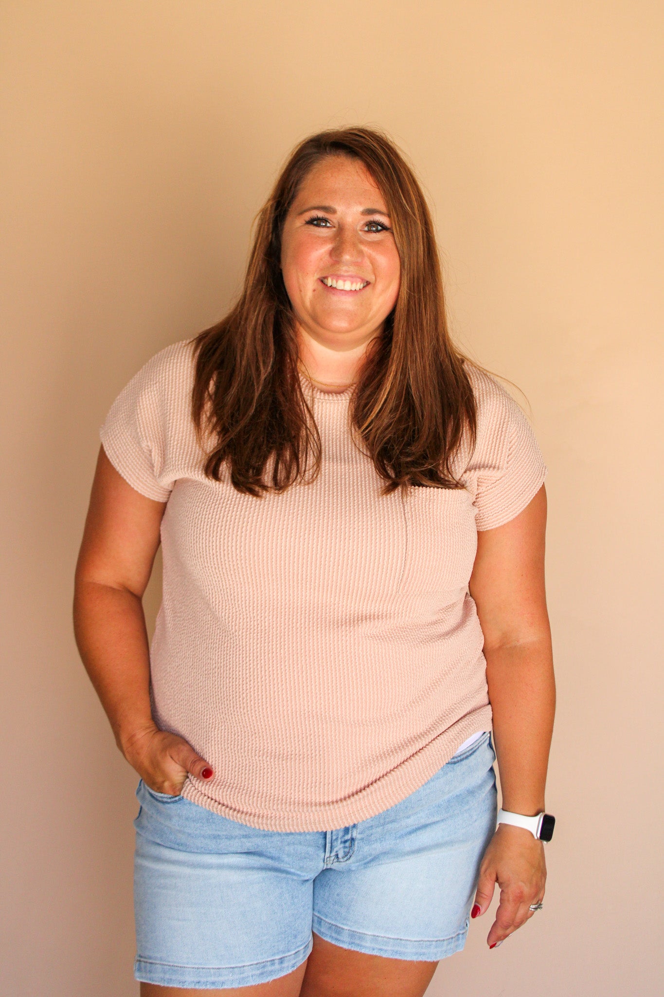 Meet the CAREN RIBBED SHORT SLEEVE TEE, a solid ribbed top with pockets that effortlessly combines comfort and style. Made with a blend of polyester, rayon, and spandex, this versatile piece will quickly become your go-to for any occasion. Stay trendy and comfortable with this must-have addition to your wardrobe.