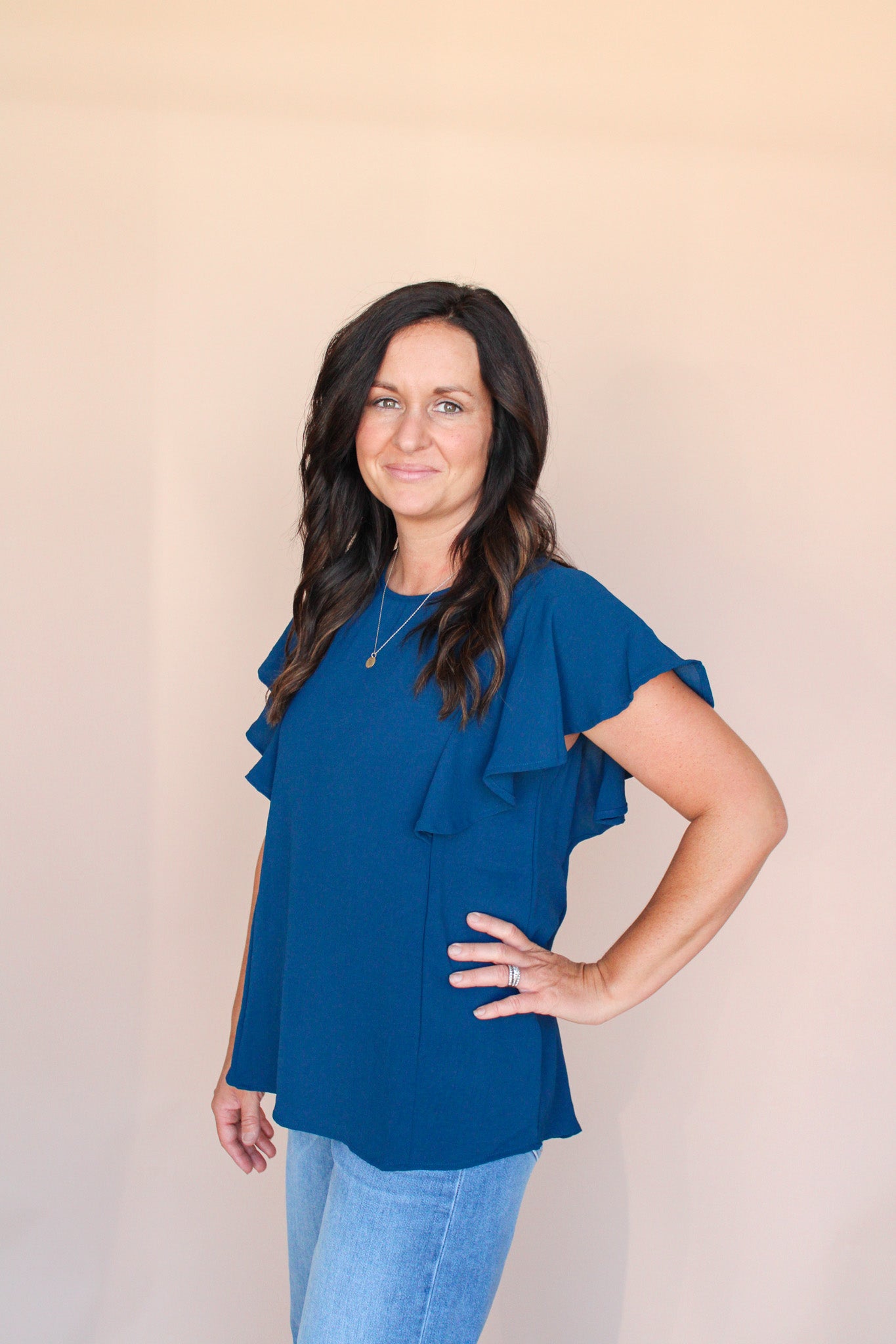 Add a dash of charm to your wardrobe with the Justice Ruffle Sleeve Blouse. Its soft stretch fabric ensures comfort all day, while the playful ruffled sleeves bring flirty movement to your look. Perfect for pairing with jeans or skirts, this solid-colored blouse adds effortless style to any outfit.