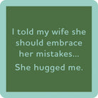 Coasters are 4”x4” and made with resin with a cork backing and round corners.