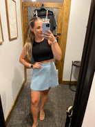 Denim skirt with back elastic waist band back and side zip closure