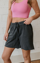 HAILIE BLACK LONGER COMFY SHORTS BY IVY & CO