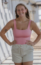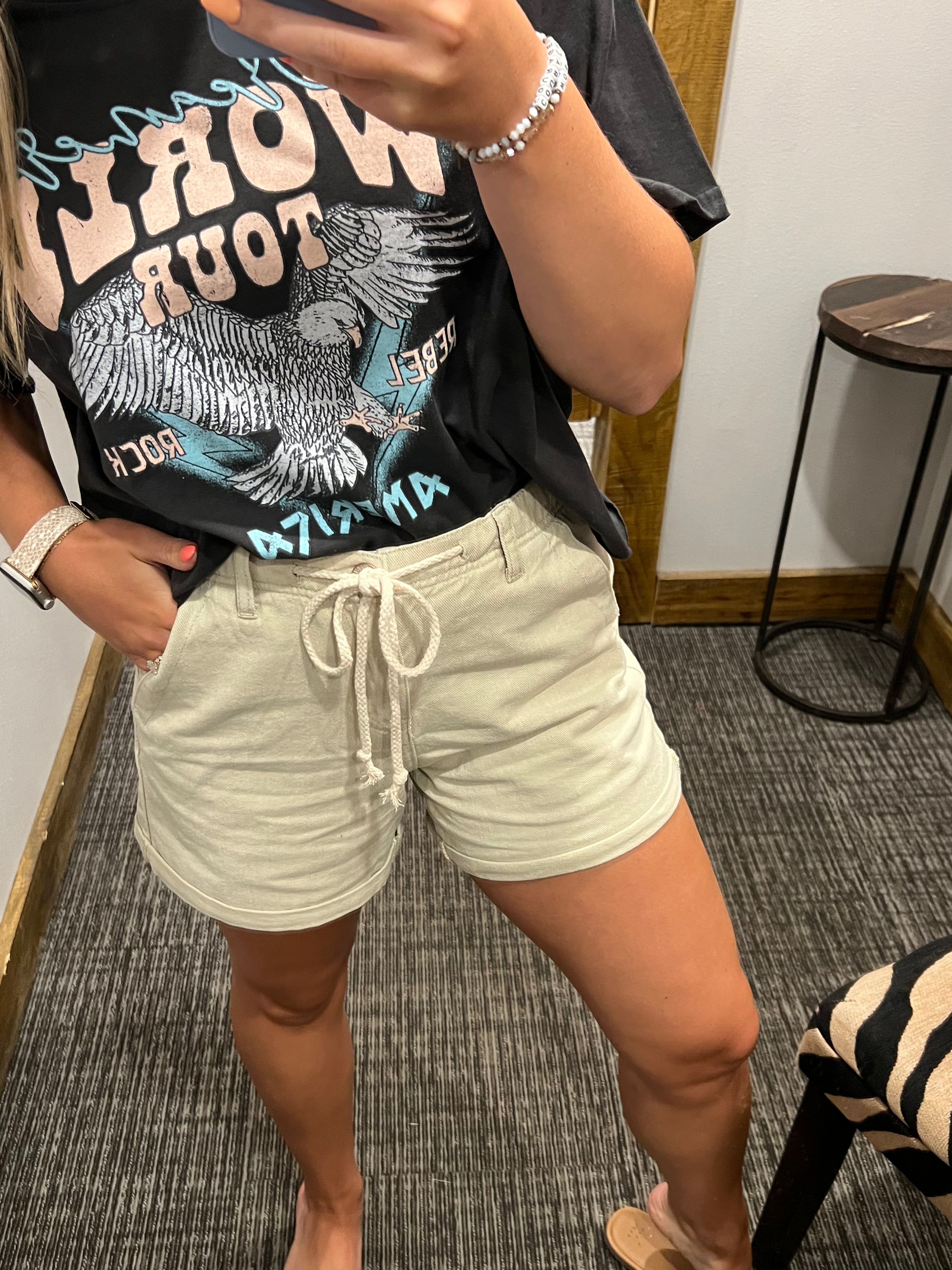 MYA IVORY DENIM SHORTS WITH DRAWSTRING WAISTBAND BY IVY & CO