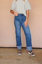 Step into playful sophistication with the Sheena High Rise Cuffed Wide Leg Jean. Crafted from a comfy blend of 90.5% cotton, 7% polyester, and 2.5% spandex, these jeans offer just the right stretch to keep you moving with ease. The wide-leg silhouette combined with a trendy cuffed hem creates a fun, flattering look that pairs perfectly with your favorite tops and sneakers or heels. Elevate your wardrobe with style that’s as spirited and effortlessly cool as you are!