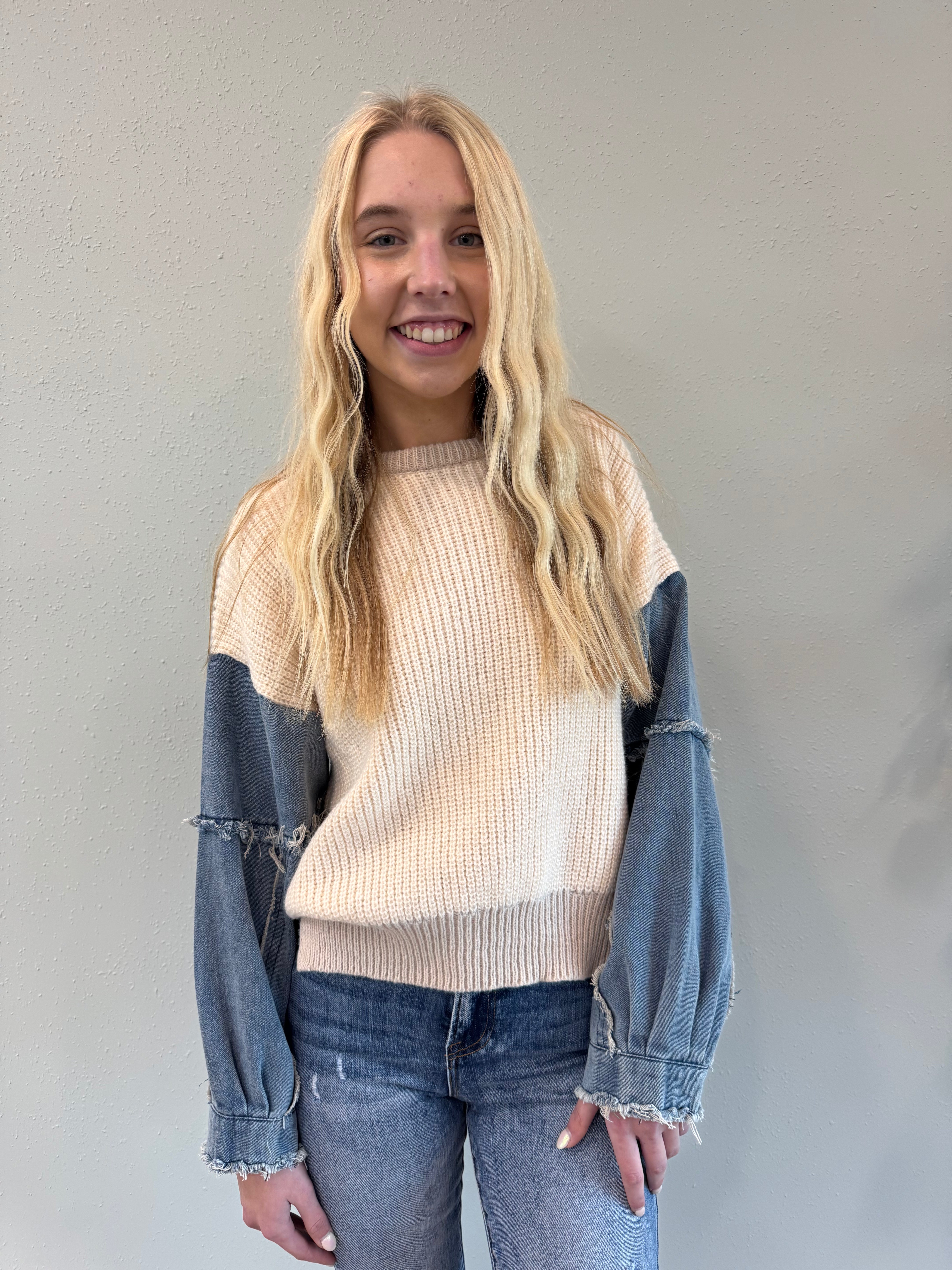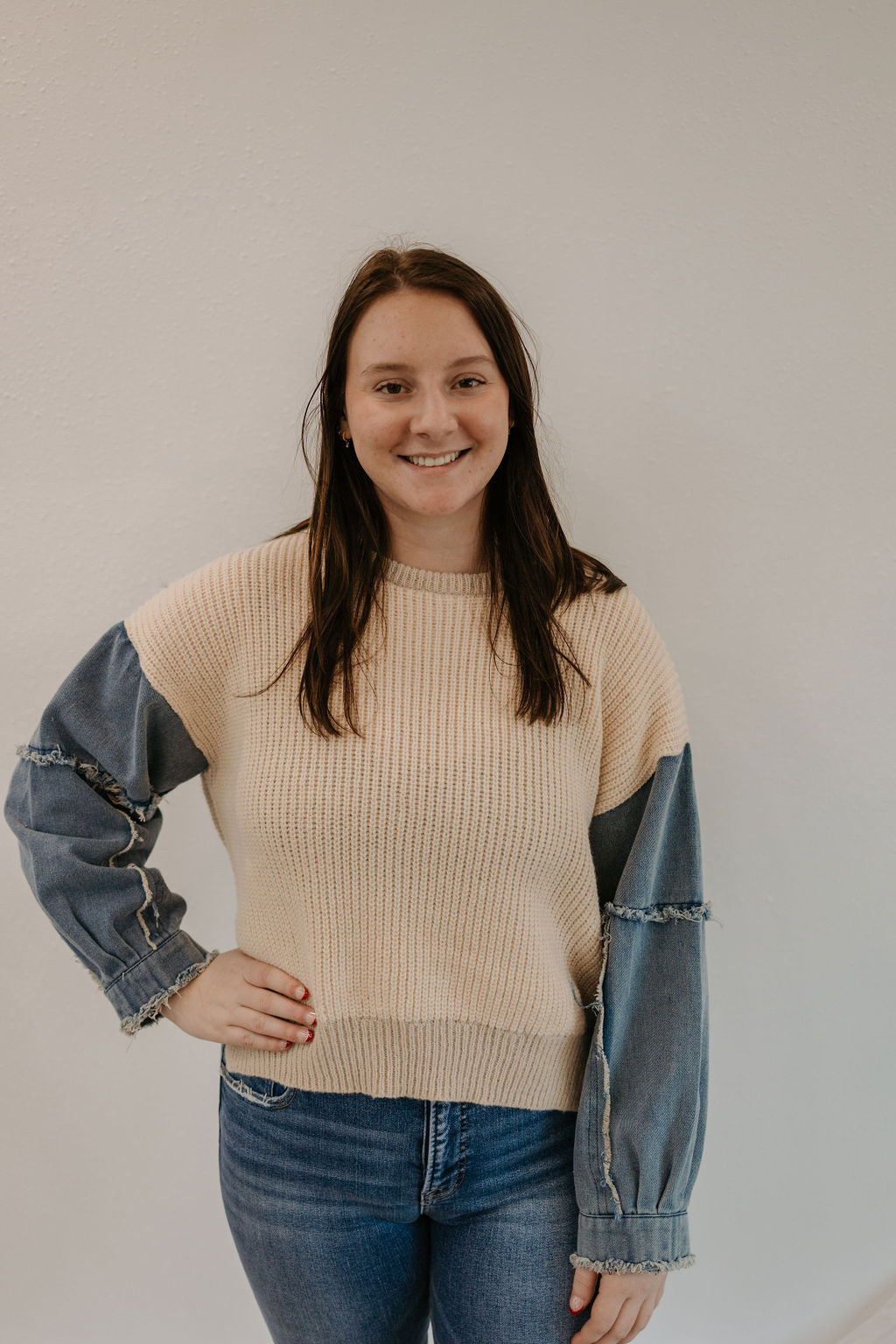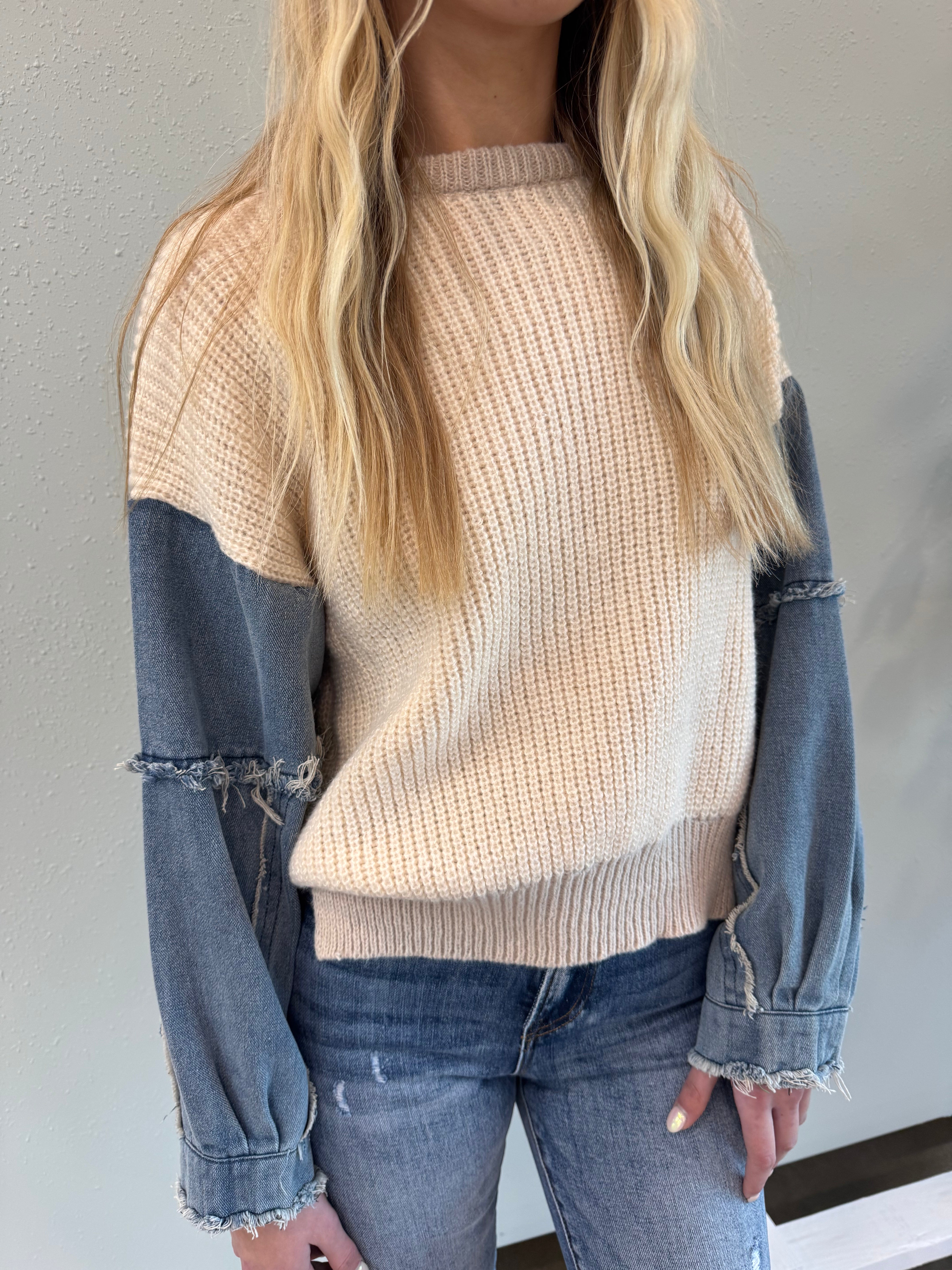 LUNA DENIM SLEEVE SWEATER BY IVY & CO