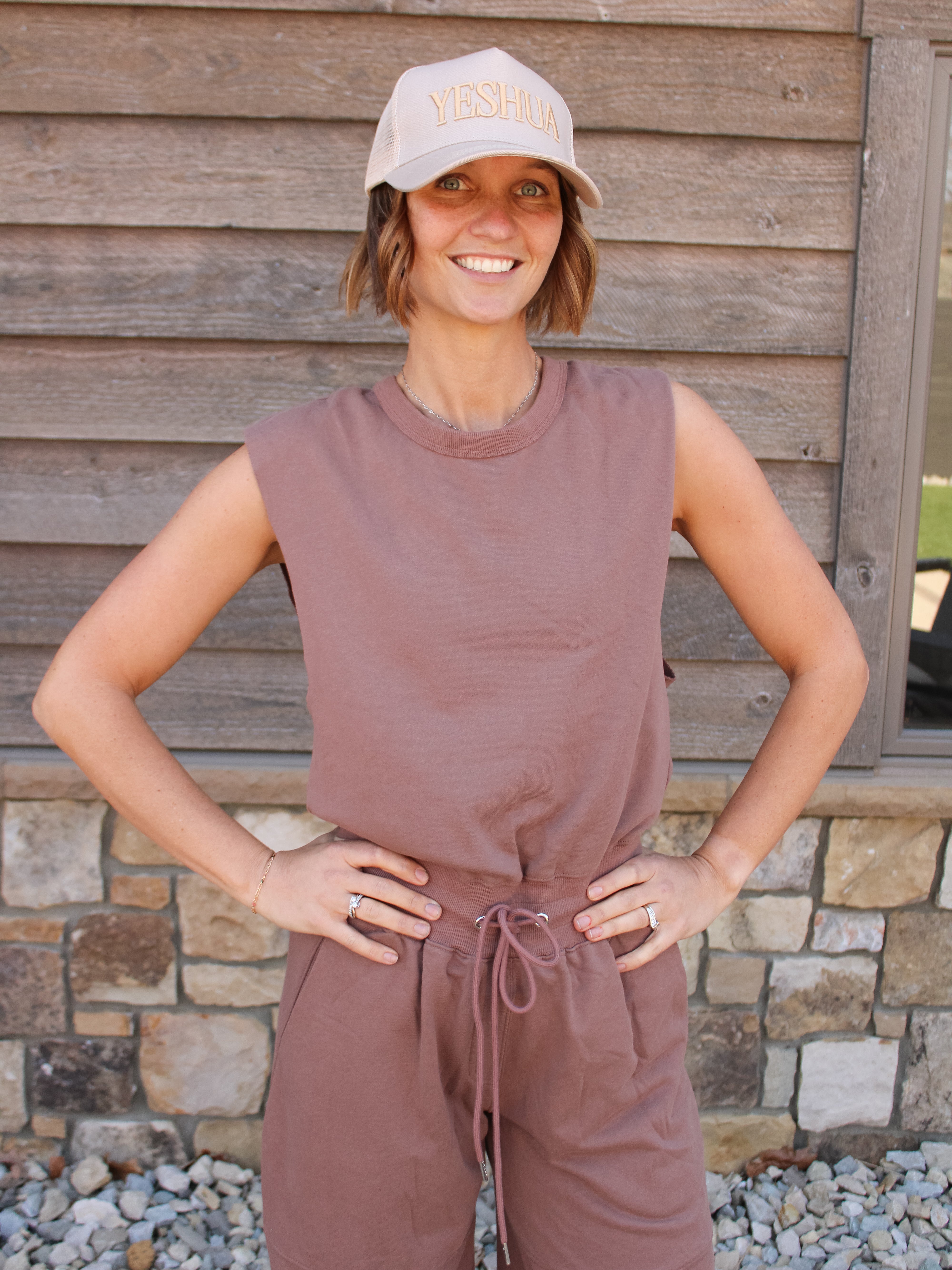 Introducing RISPEN, the perfect jumpsuit for a relaxed, yet stylish look. Made with a mineral washed fabric, it features a rounded neckline, cap sleeves, and a button closure in the back with a large keyhole. The elastic waist with a pull drawstring adds comfort, while the added seams provide a touch of detail. With two side hip pockets, this jumpsuit is both practical and fashionable.