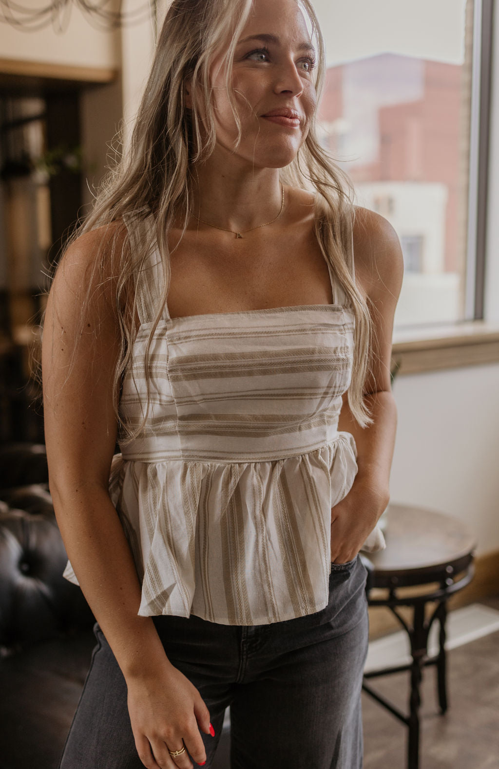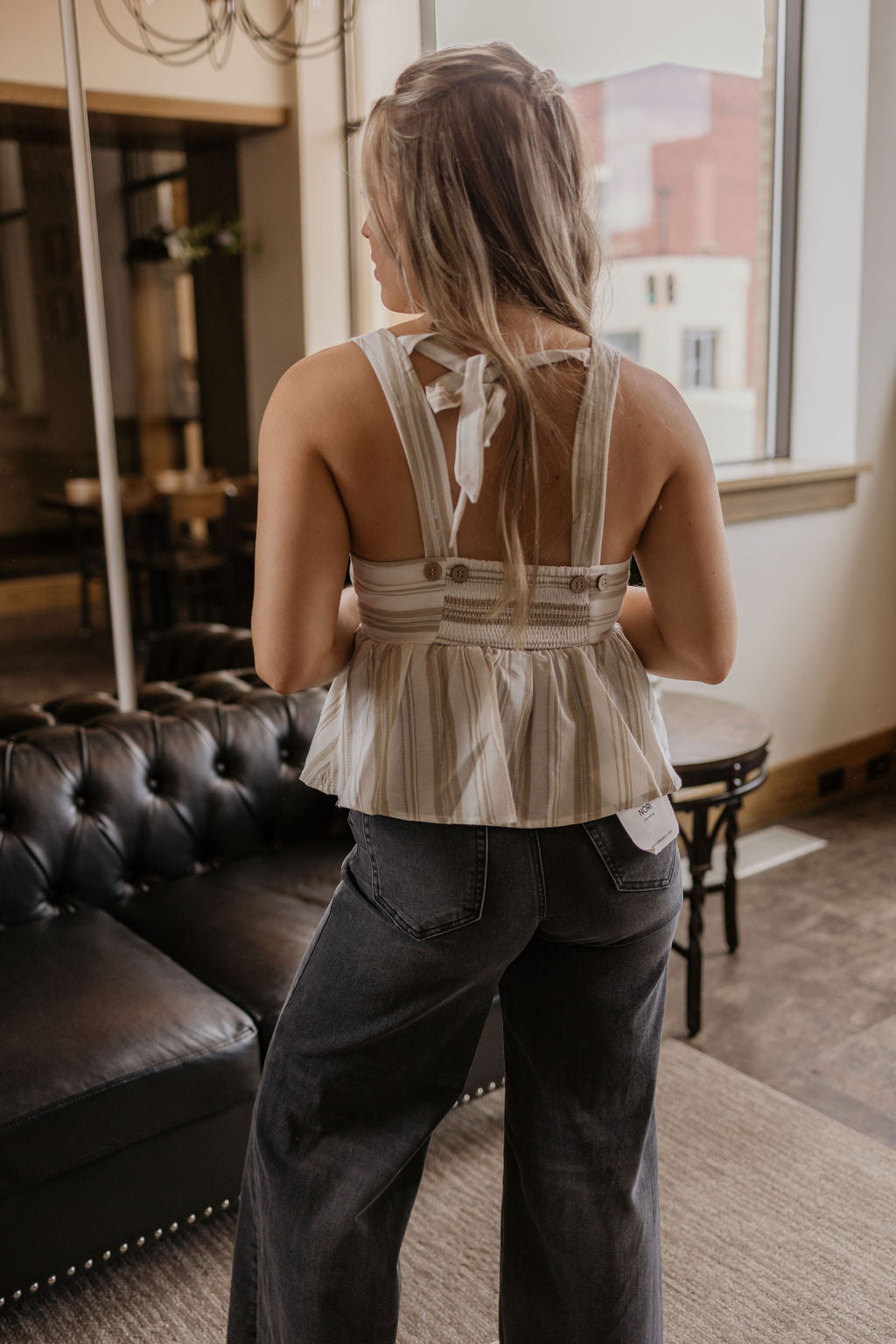 Striped linen tie back detail tank top
