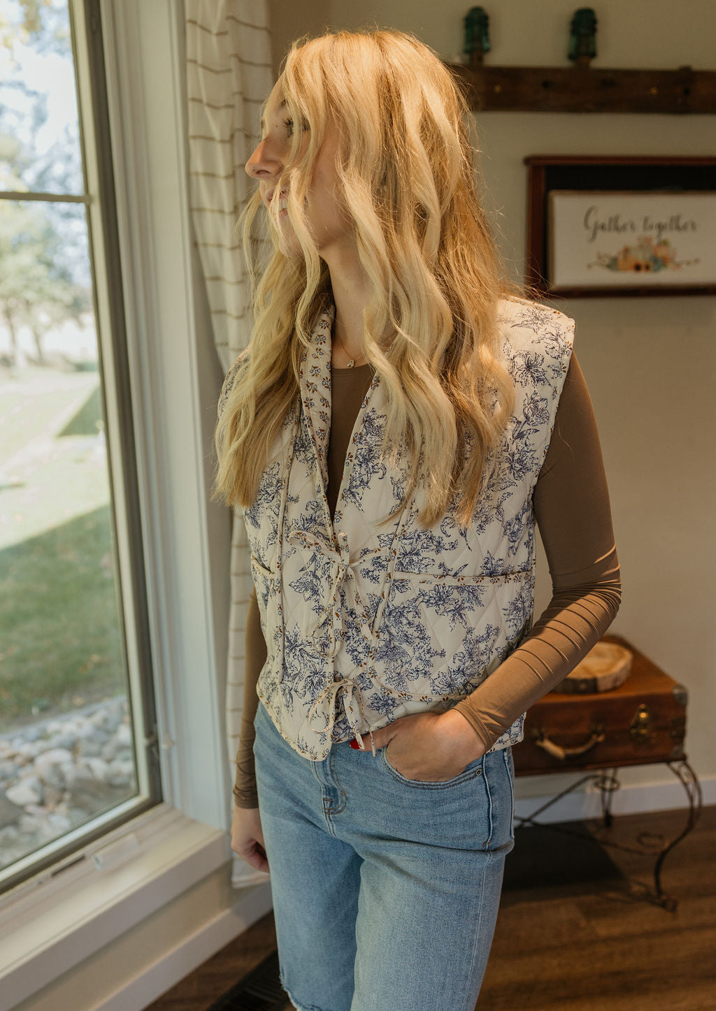 OKIMI FLORAL QUILTED VEST