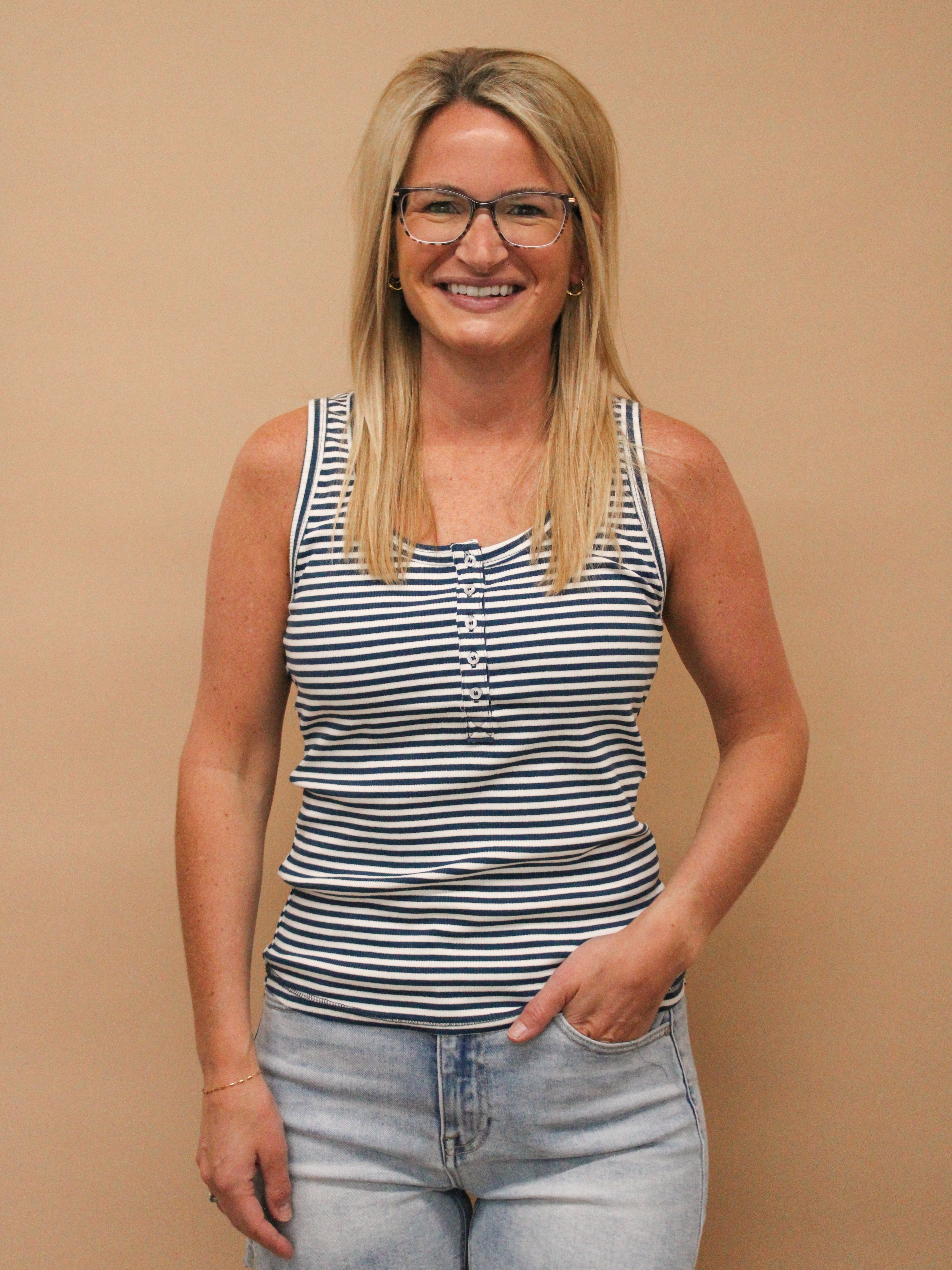Elevate your casual style with our TARIN tank! This playful scoop neck top features a trendy half-button detail and sleek ribbed texture with eye-catching stripes. Perfect for mixing and matching, this sleeveless wonder adds a pop of personality to your summer wardrobe. Pair with your favorite shorts or jeans for an effortlessly fun look!