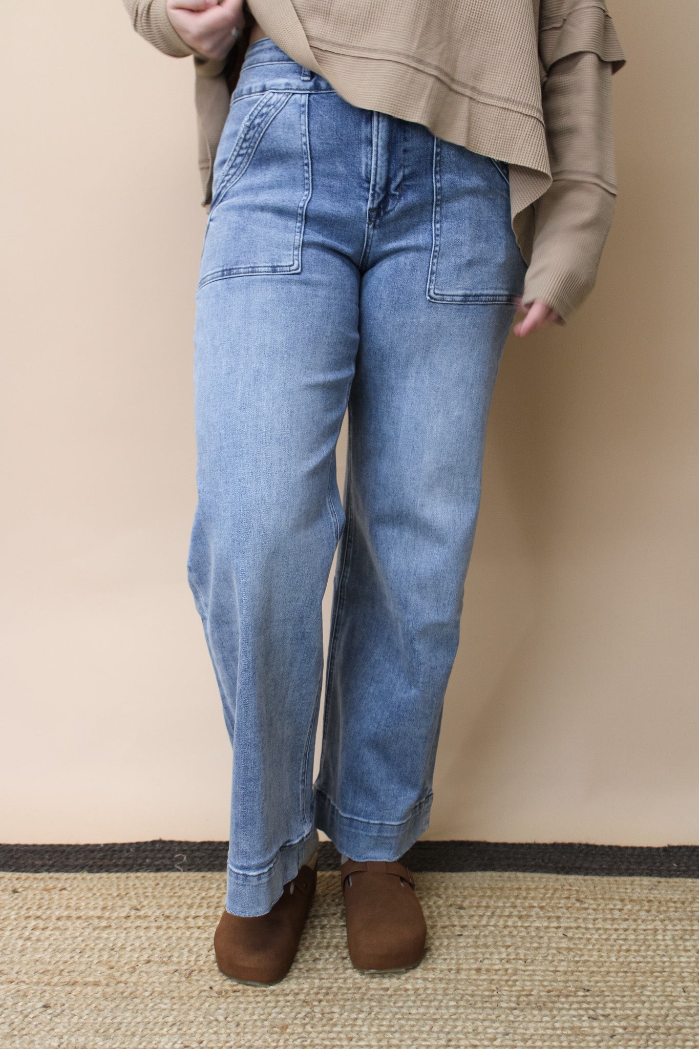 AYSHA SUPER HIGH RISE PATCH POCKET WIDE LEG JEAN