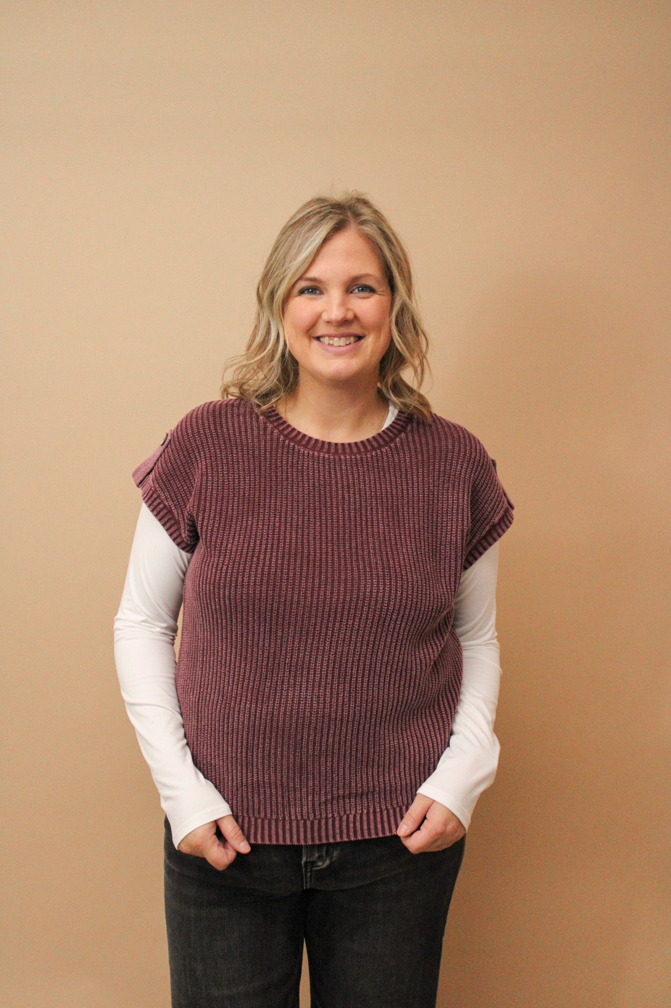 Stay cozy and cool in the Brandie Washed Knit Short Sleeve Sweater. This playful pullover features soft washed knit fabric with charming tab and button details for a touch of flair. Its unique layered cut pairs a short sleeve knit with a longer sleeve underneath, making it perfect for breezy days and stylish layering. Embrace comfort with a fun twist!