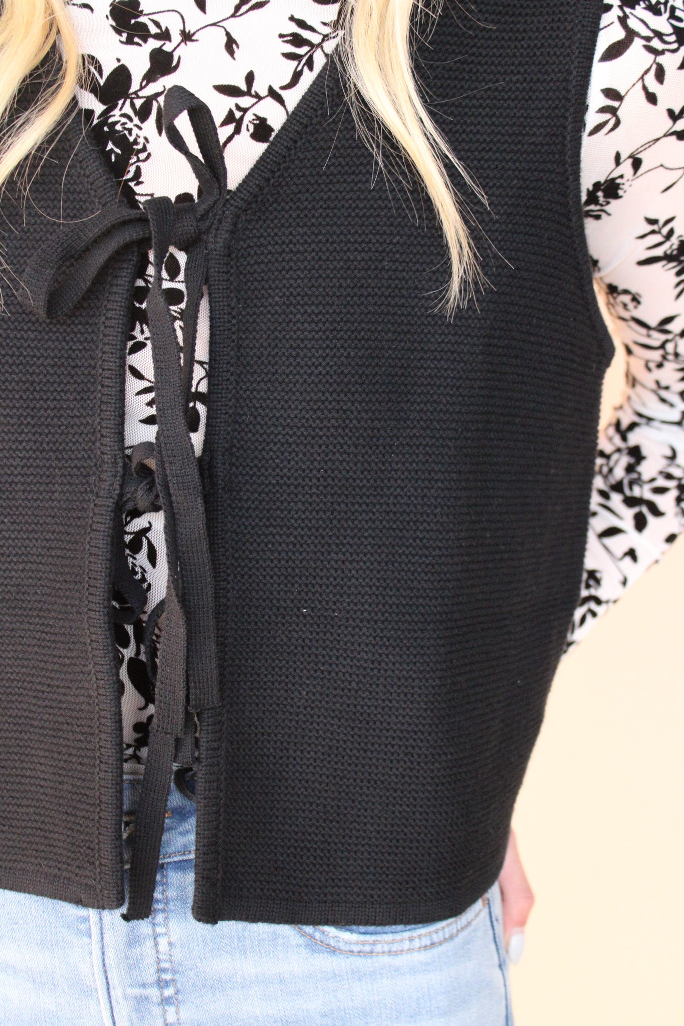 Tie the knot on effortless style with this sleek sweater vest! Perfect for layering over your favorite tees or going solo, this piece brings a fun twist with its charming tie-front detail. The sleeveless design keeps things breezy while the cozy knit fabric adds warmth and texture. Whether you're dressing up your casual look or adding dimension to an outfit, this versatile vest is your new go-to for playful, put-together vibes.
