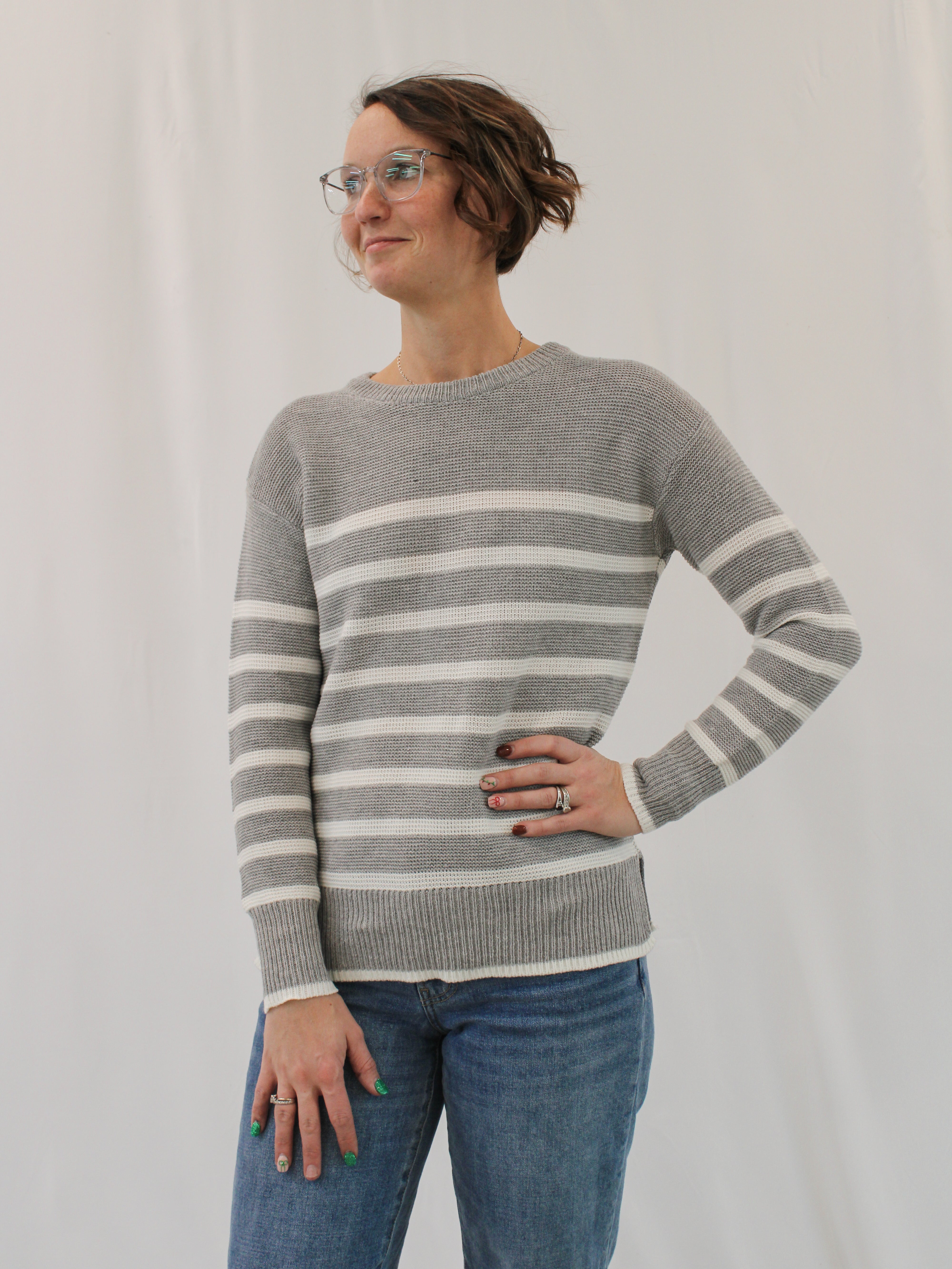 Get cozy with our lightweight sweater! Featuring a stylish striped design, long sleeves, and a comfortable round neckline. Keep warm with the ribbed ends while looking effortlessly cool. Perfect for any occasion!