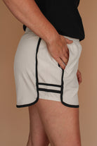 Move with ease and flair in these playful shorts crafted from recycled butter-soft fabric combined with lightweight stretch woven material. Designed with a mid-rise fit and elastic waistband, they offer comfort and flexibility for your active days. Pleated sides and bold color piping add a fun, stylish touch, while the built-in inner lining and a handy front mini pocket keep you ready for anything. Perfect for those who love to stay active without sacrificing style! Model is 5'8" and wears size Small.