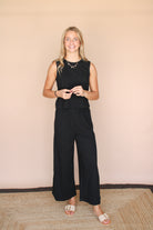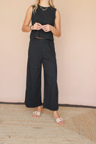 This flare pant is made with a 100% cotton jersey knit fabric and features a wide flare silhouette with an elastic waistband. This pant is a relaxed but stylish piece that looks so good with any of our everyday tops.