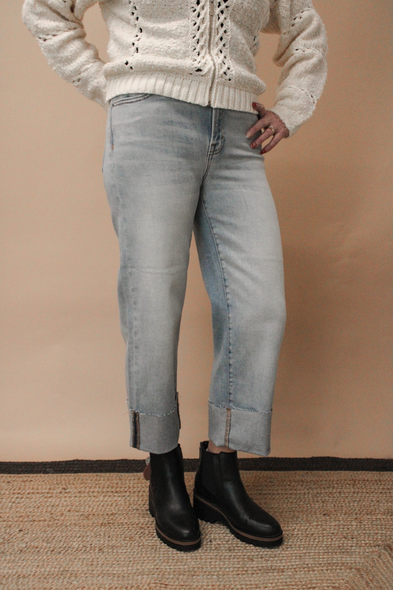 Meet your new denim obsession! The Vintage Ella High Rise Wide Straight Jean is here to serve retro vibes with a modern twist. Crafted from a premium cotton-blend fabric (93% cotton, 5% polyester, 2% spandex), these jeans offer the perfect balance of structure and stretch. Rock the bold 4" wide cuff for that authentic vintage aesthetic, or uncuff them for a sleek, elongated silhouette. With an 11" rise and available inseams of 26" (cuffed) or 30" (uncuffed), they're designed to flatter and feel amazing. Whether you're channeling '90s nostalgia or creating your own style story, these jeans are ready to become your go-to favorite.