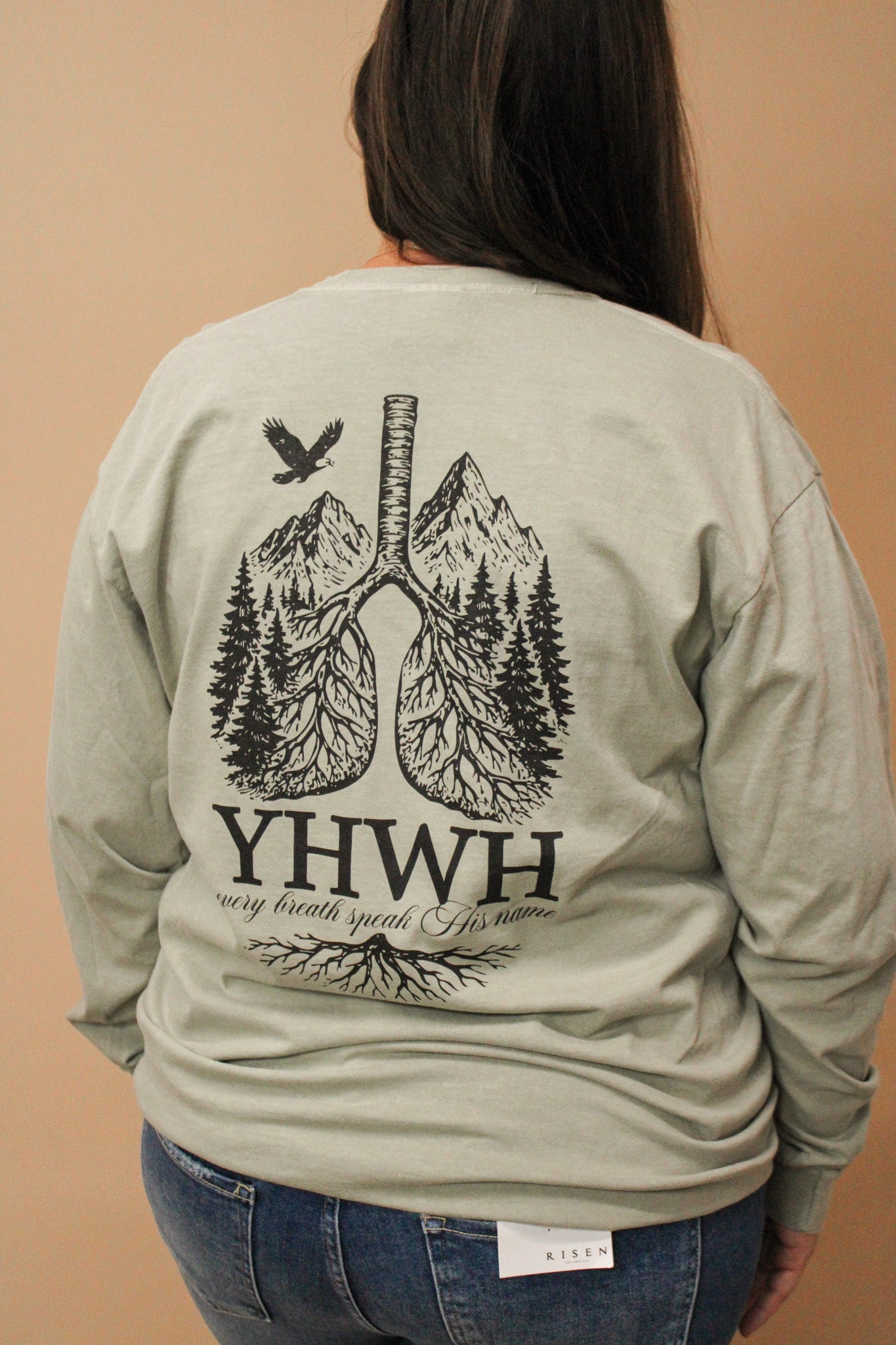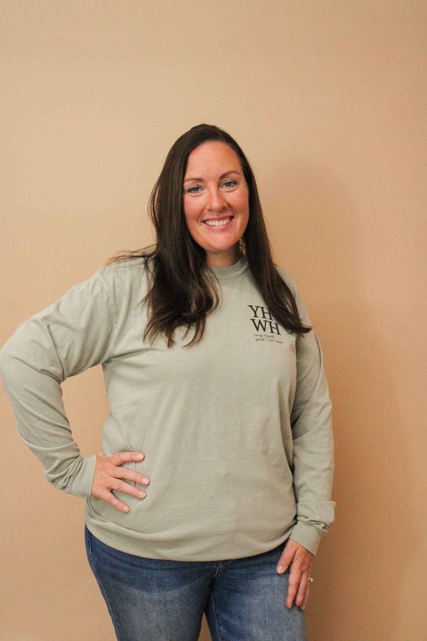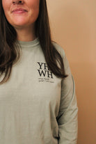 Celebrate faith in every breath with this YAHWEH graphic long sleeve, printed exclusively for B Fierce Boutique. The sandstone-colored Comfort Colors fabric offers cozy softness and a perfect vintage vibe, making it an ideal everyday staple. Let your spirit shine playfully while staying comfortable and stylish all day long.