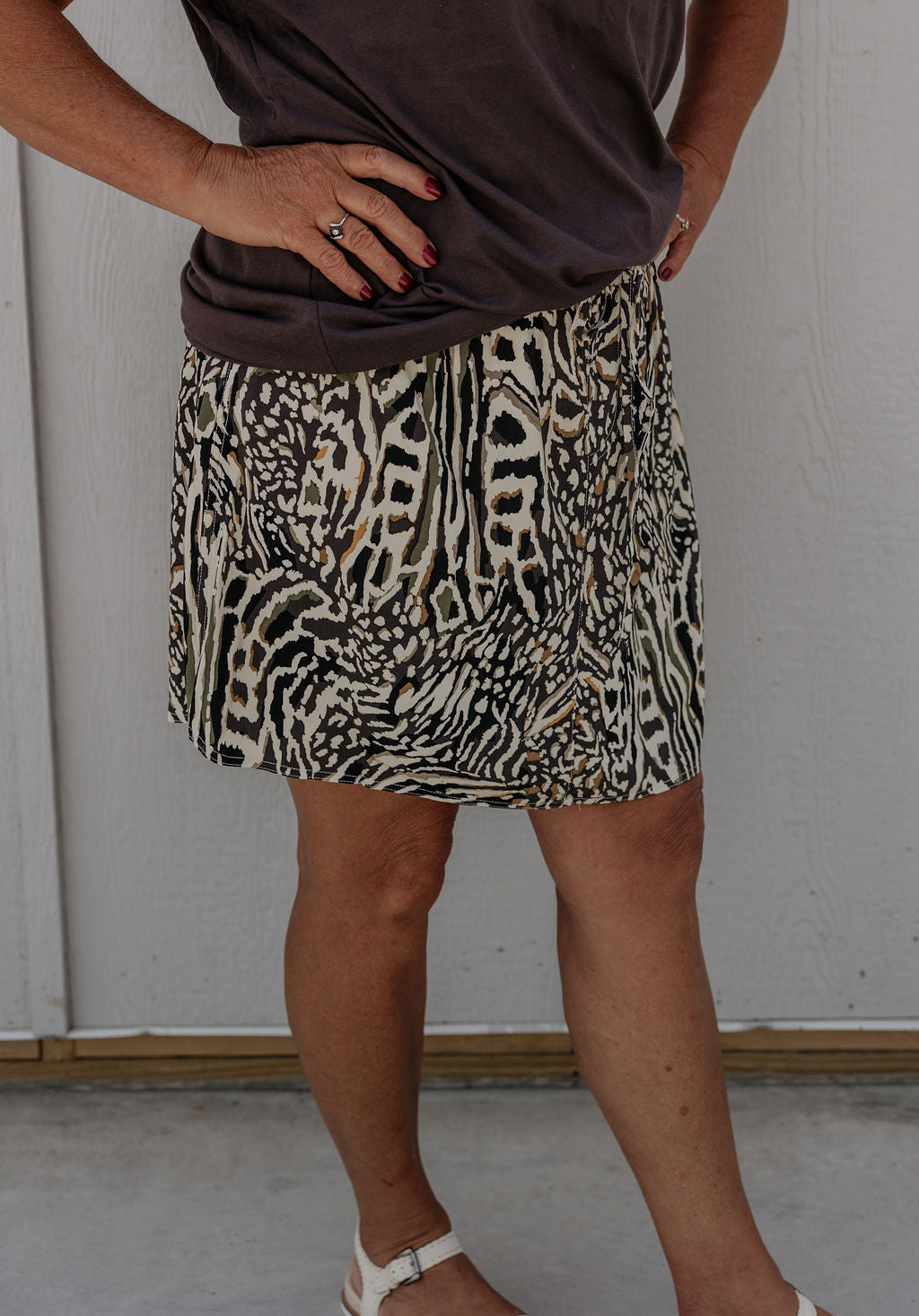Dolphin short skort with elastic waistband and drawstring closure