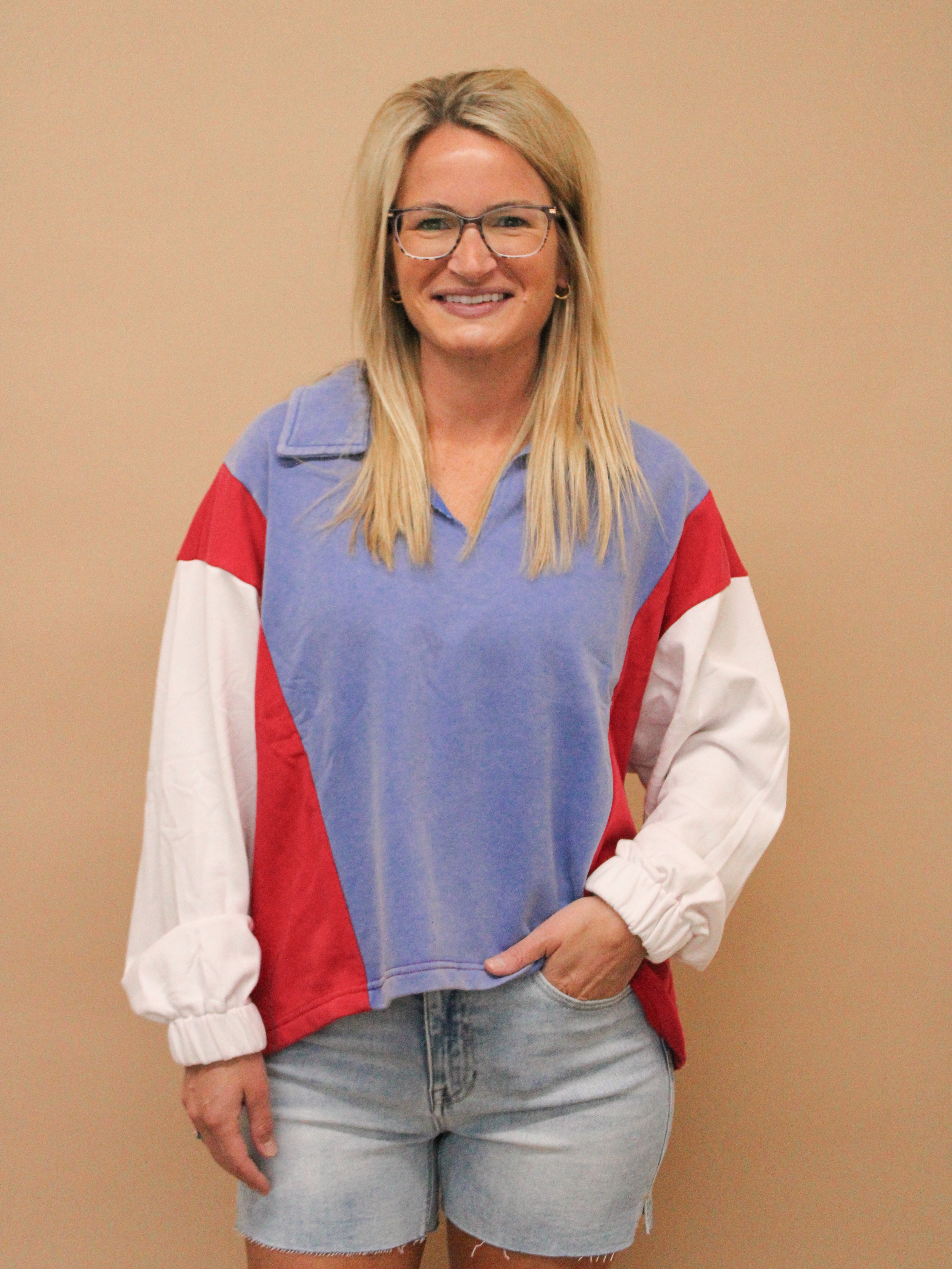 Dive into cozy-chic style with this mineral washed french terry pullover! The playful color blocking adds a pop to your wardrobe, while the collared V-neckline keeps things interesting. With elastic cuffs for comfort and a trendy high-low hem, this boxy silhouette is perfect for those "cute but comfy" days when you want to look put-together without trying too hard!