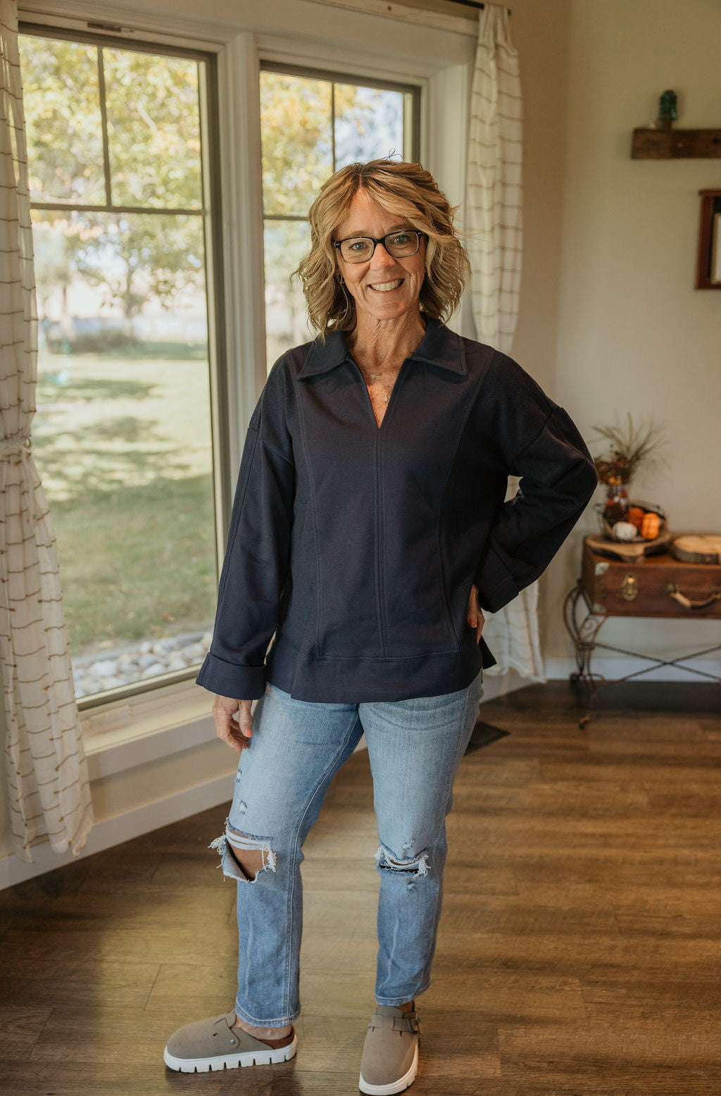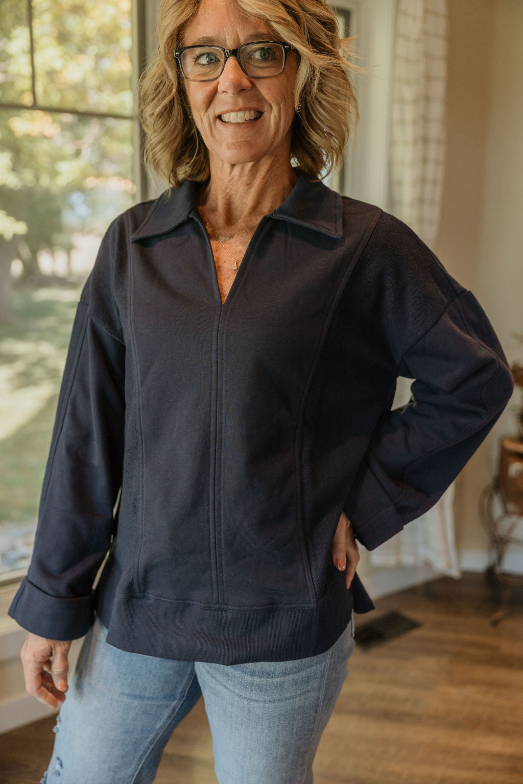 RYDER V-NECK COLLARED SWEATSHIRT