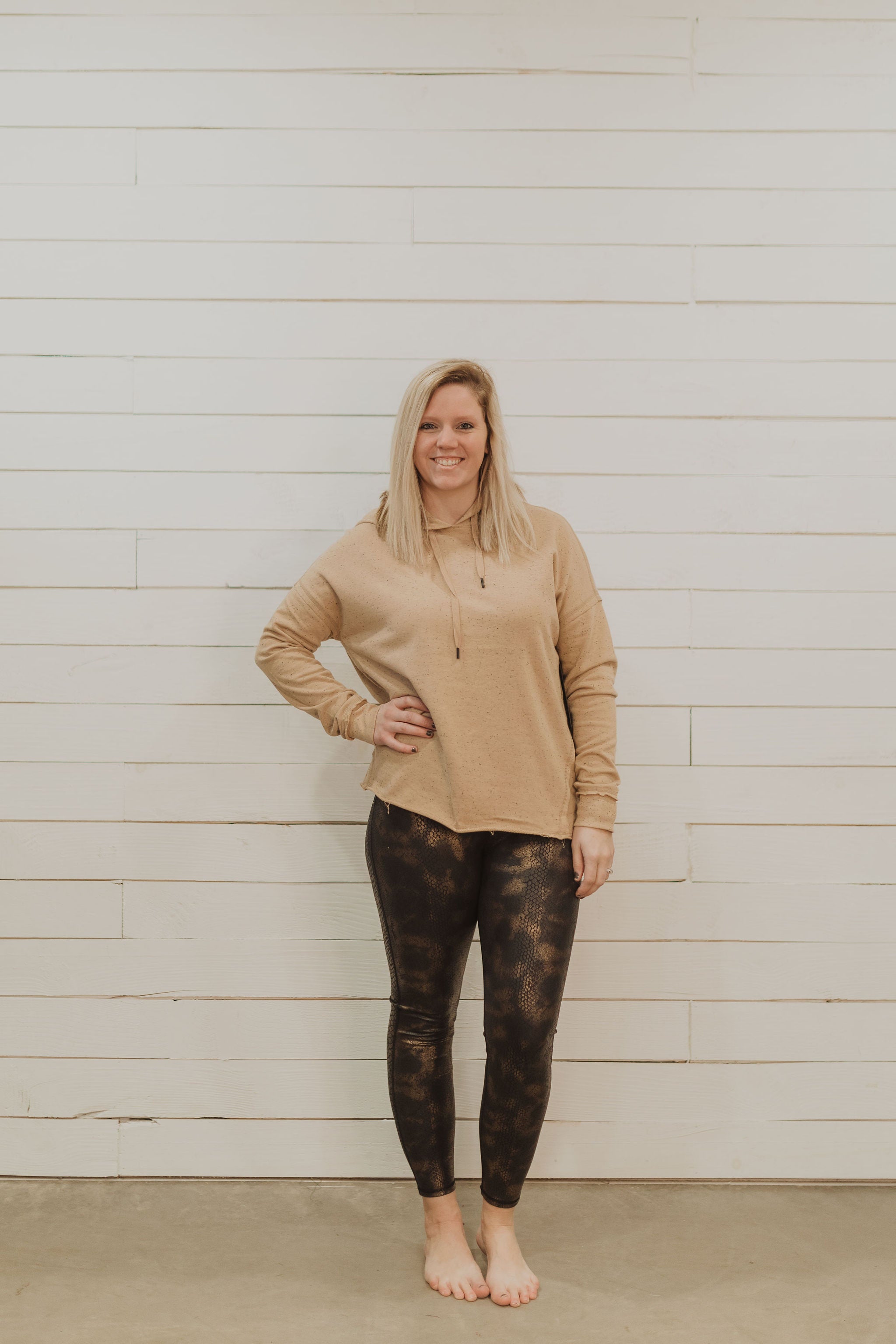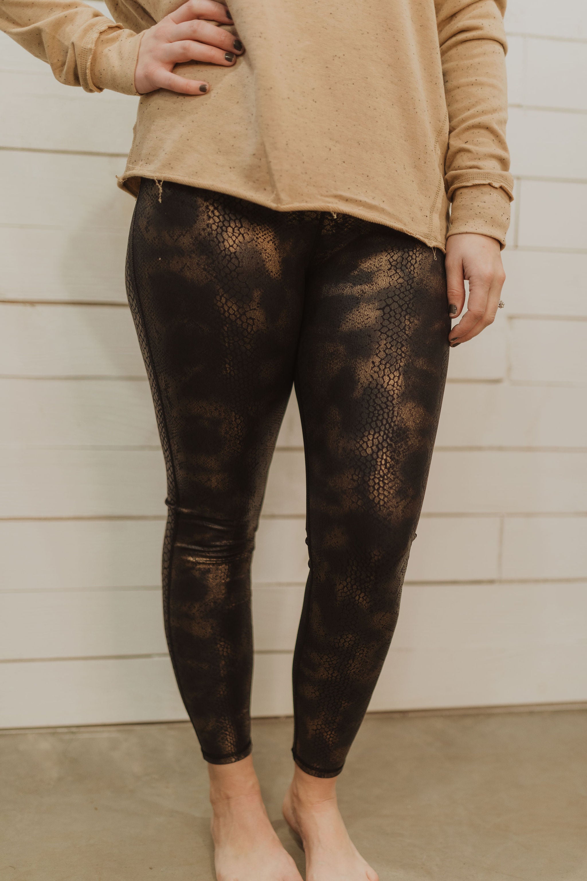 Cute black leggings with snake foil imprint. Pairs perfect with a black or cream sweatshirt
