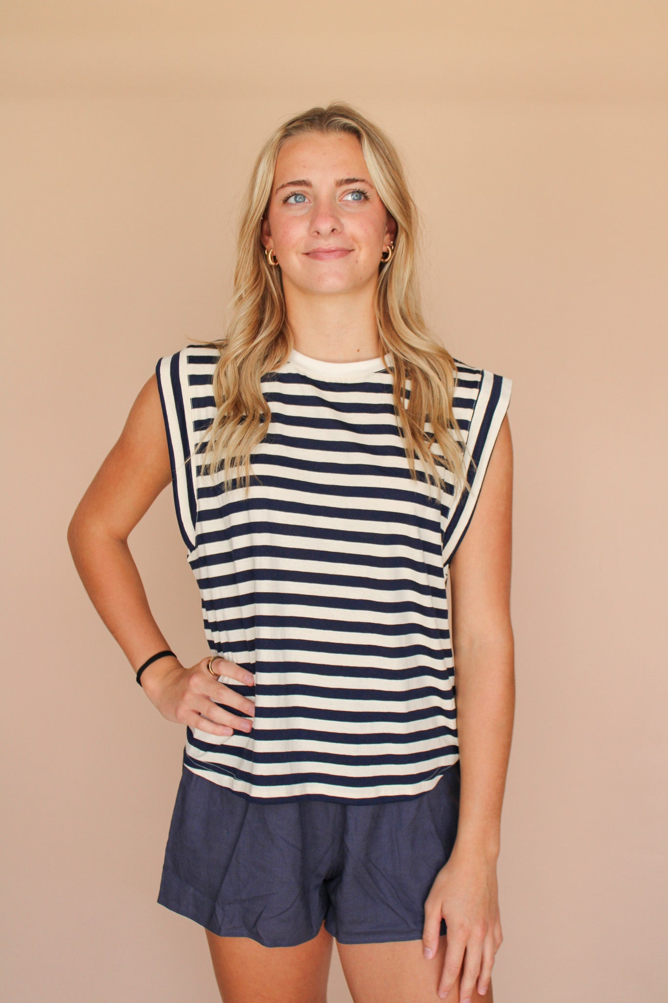Get summer-ready with the Cannyn Striped Muscle Tee! This sleeveless, lightweight tank features a fun striped pattern and a comfy round neck, making it your go-to for easy, casual outfits. Crafted from a soft 50% cotton and 50% polyester blend, it keeps you cool and stylish all season long. Perfect for layering or rocking solo on warm days!