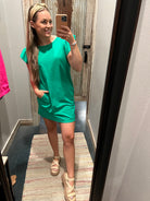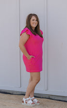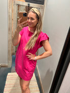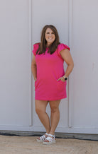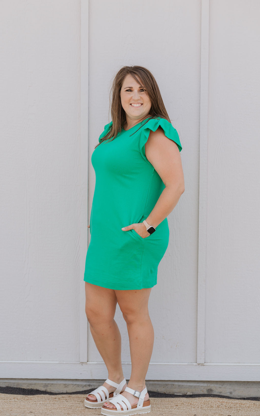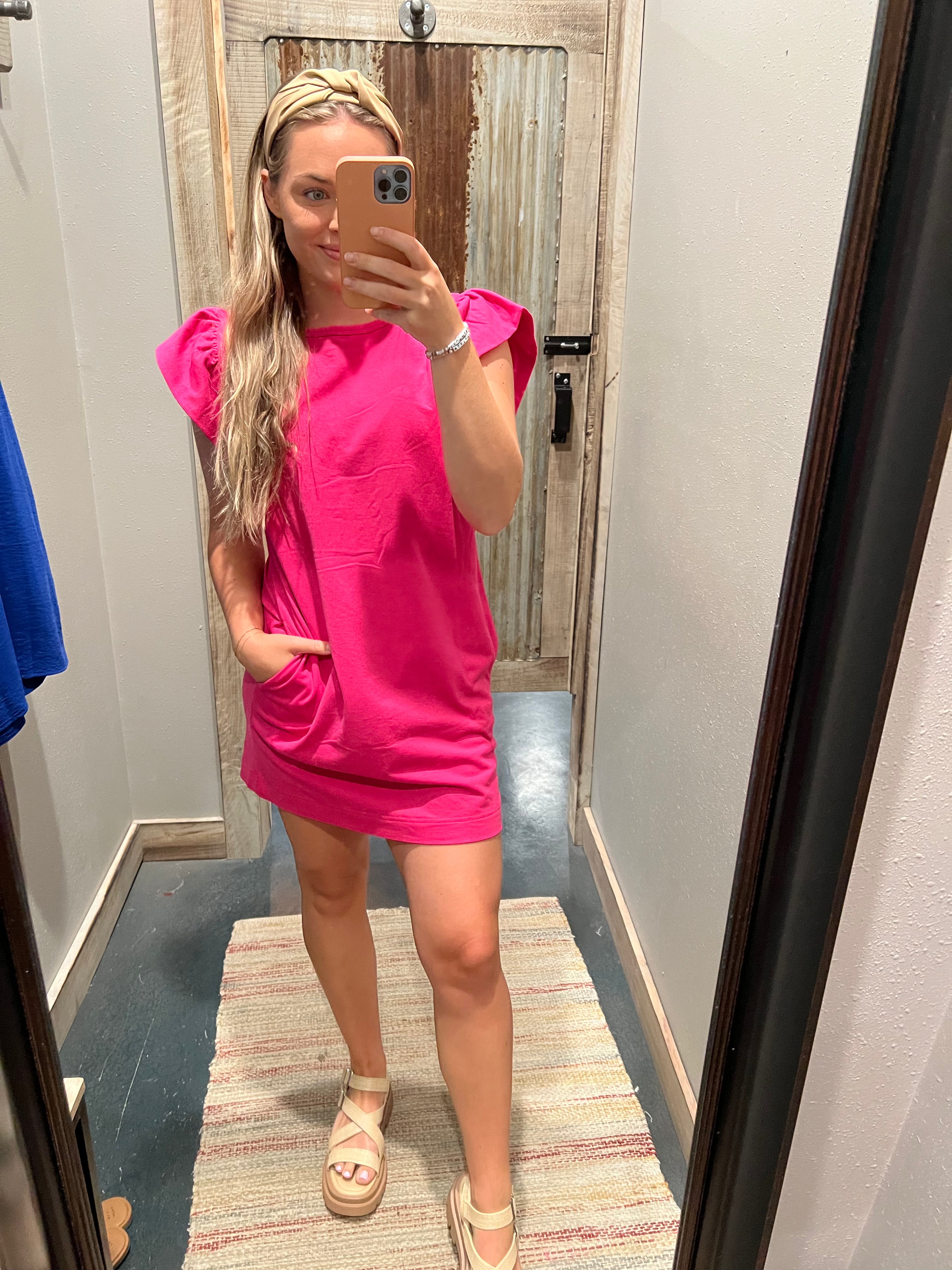 Ruffle sleeve detail short sleeve dress with pockets!!