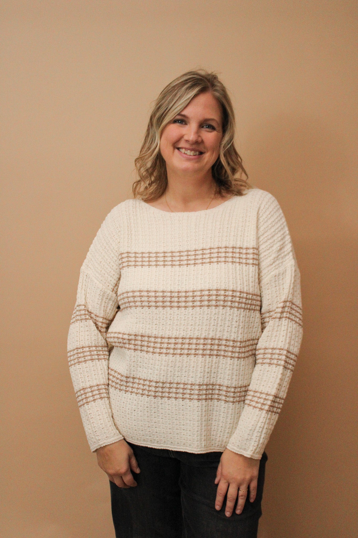 Cozy up in the GINA Oversized Knit Boxy Sweater, designed for relaxed days with a playful vibe. Its chunky striped knit, drop shoulder, and roomy boxy cut make it perfect for layering or lounging. Crafted from a soft blend of 75% acrylic and 25% nylon, it offers warmth and comfort without the weight. Whether you're heading out or staying in, this sweater adds a fun, effortless touch to any outfit.