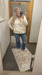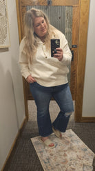 Curvy medium washed high rise distressed flare jeans