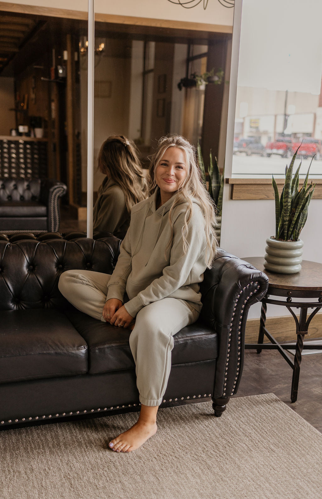 Casual oversized sage colored hoodie sweatshirt