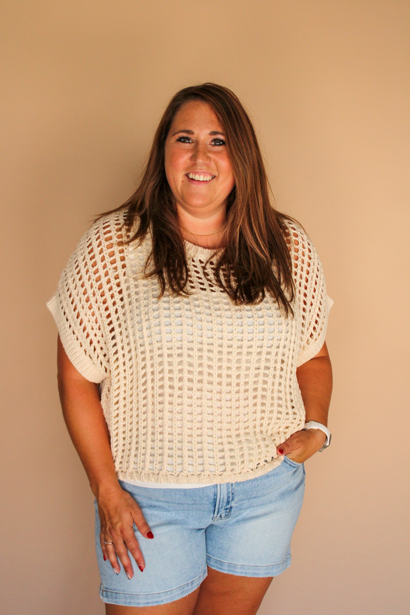 Dive into summer with KANDACE, our breezy crochet knit top! With playful open weave and carefree dolman sleeves, this top brings the fun to fashion. Ribbed edges add a touch of structure to its boxy, relaxed fit. Perfect for beach days or night outs—just layer over your favorite tank and watch heads turn!