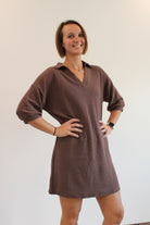 Introducing the LAINA KNIT COLLARED DRESS - a stylish and practical choice for any occasion! This dress features a rich brown color, a classic collared neckline, and 1/2 sleeves, making it a versatile and comfortable option for your wardrobe. Don't miss out on this must-have piece!