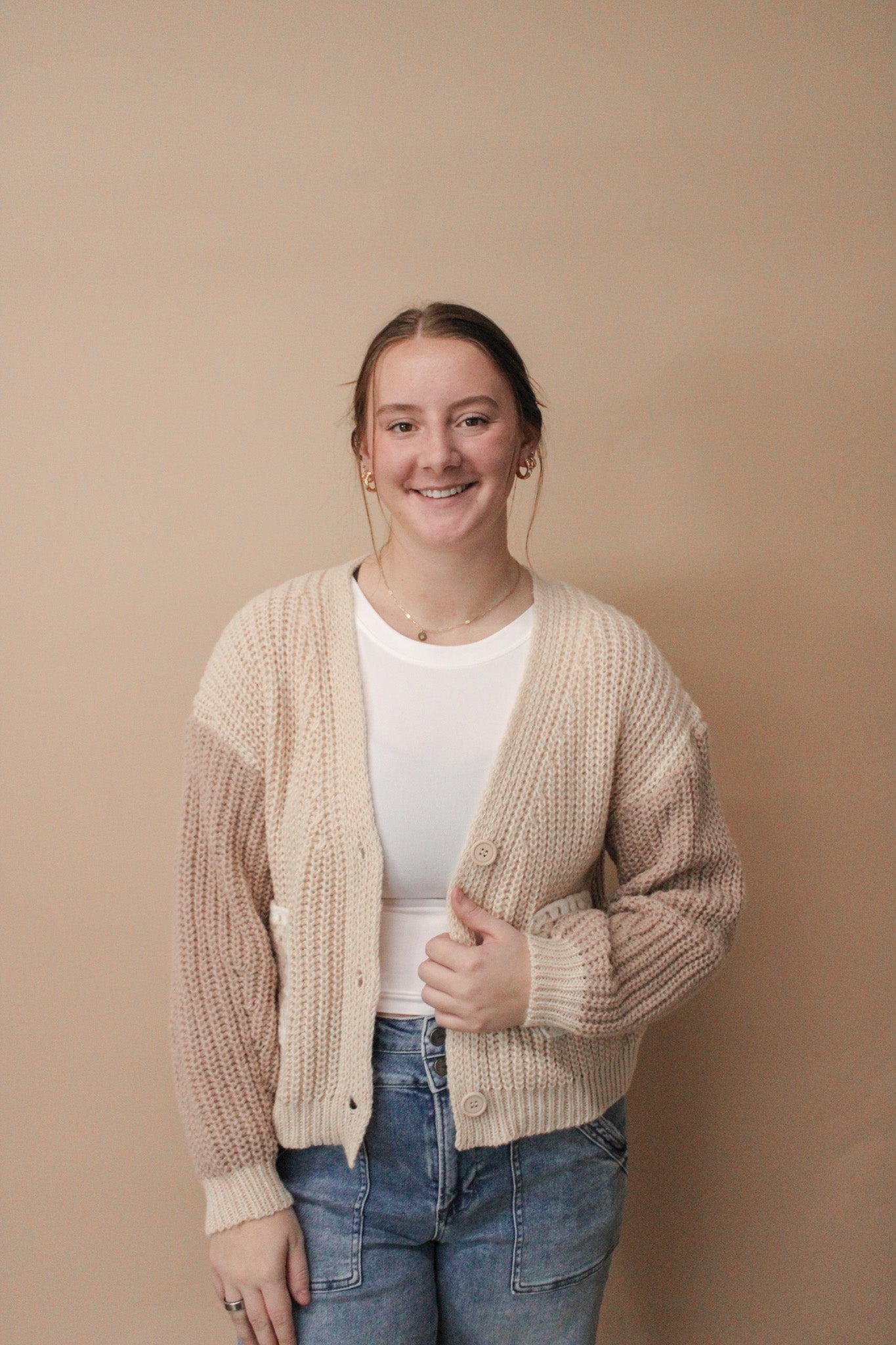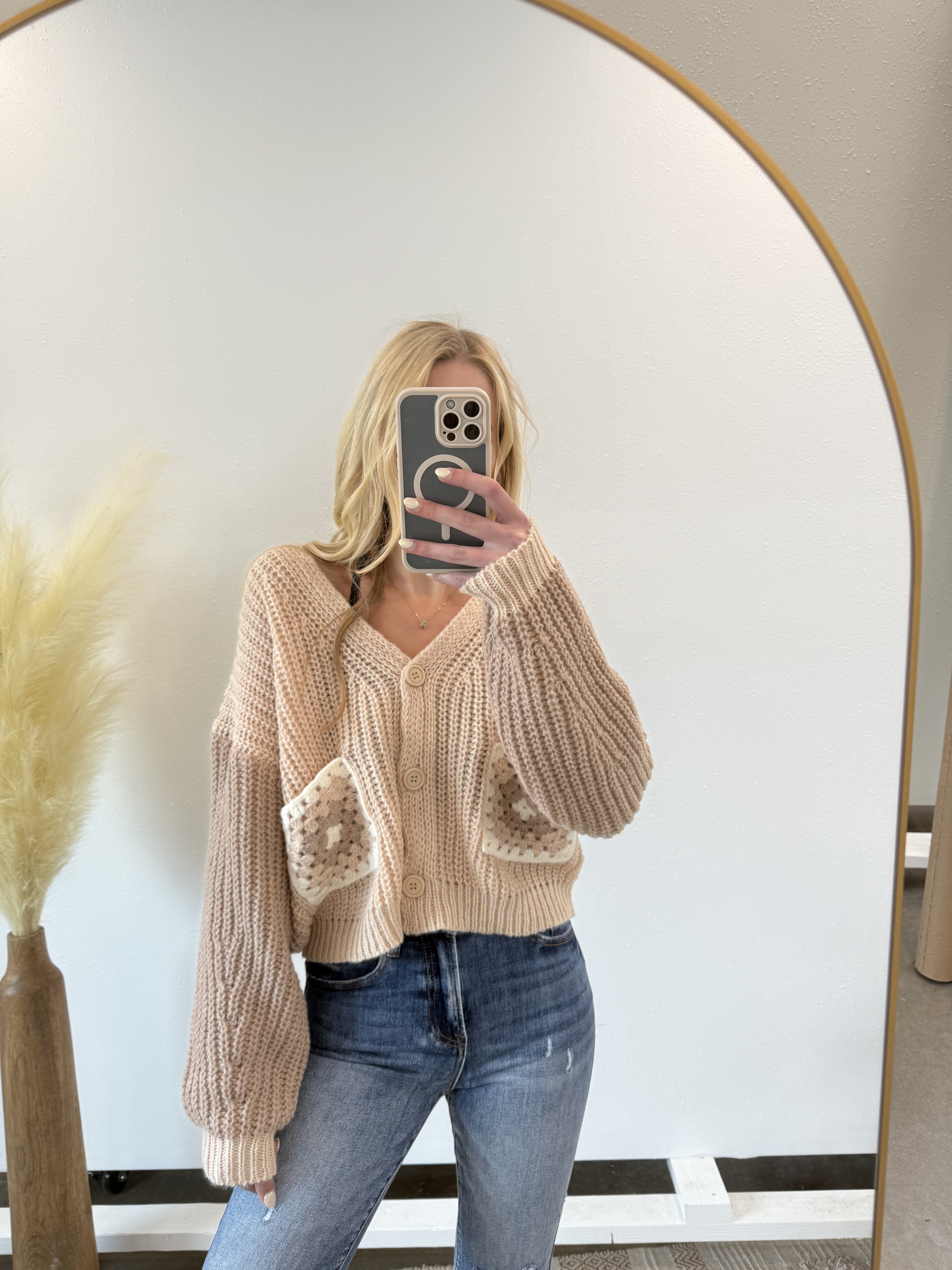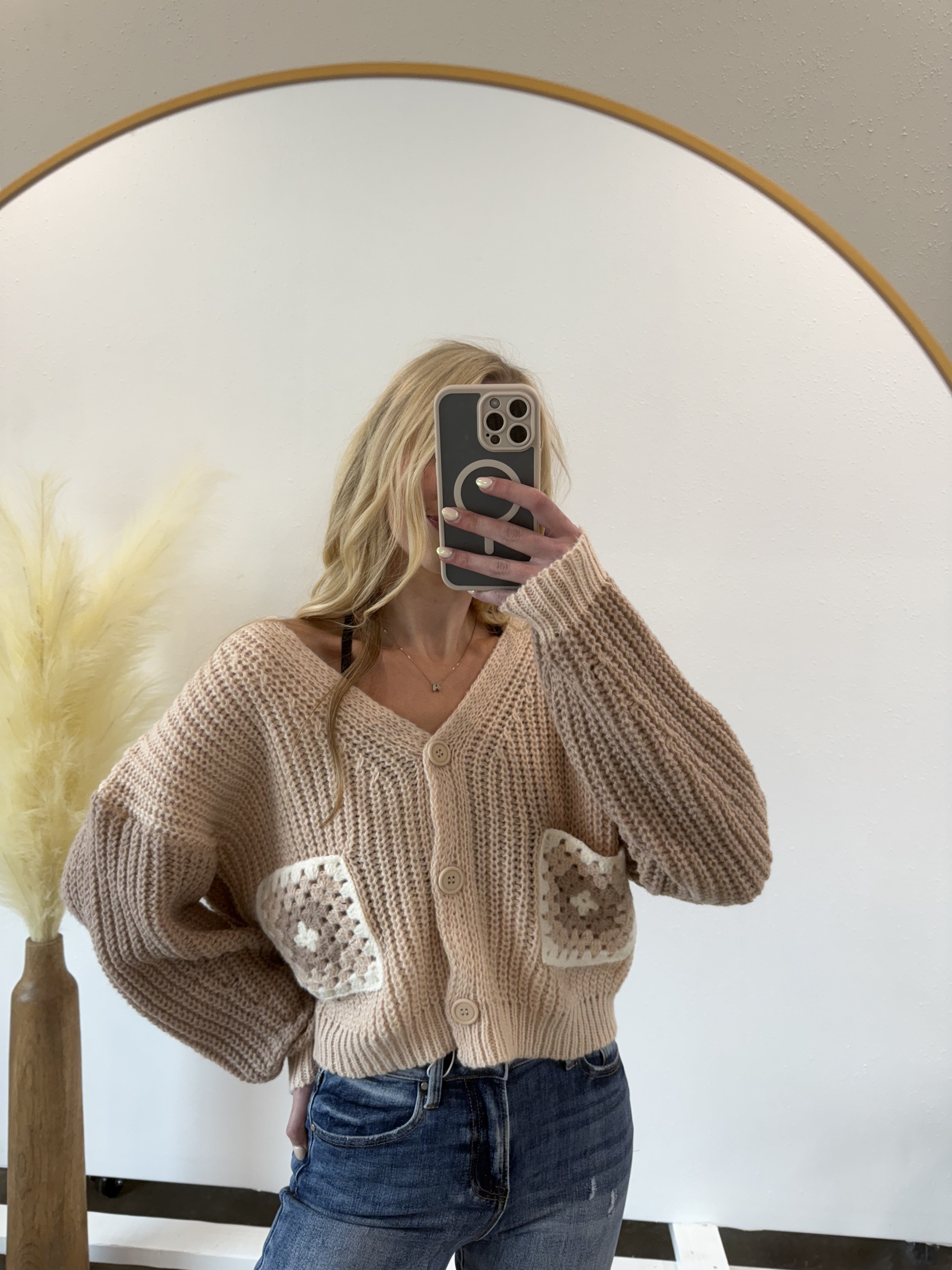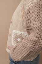 Add some whimsy to your wardrobe with our Knit two tone cardigan! Featuring playful flower blocks, this cozy cardigan is perfect for any occasion. Stay warm and stylish in this unique and fun piece. Don't miss out, grab yours now!