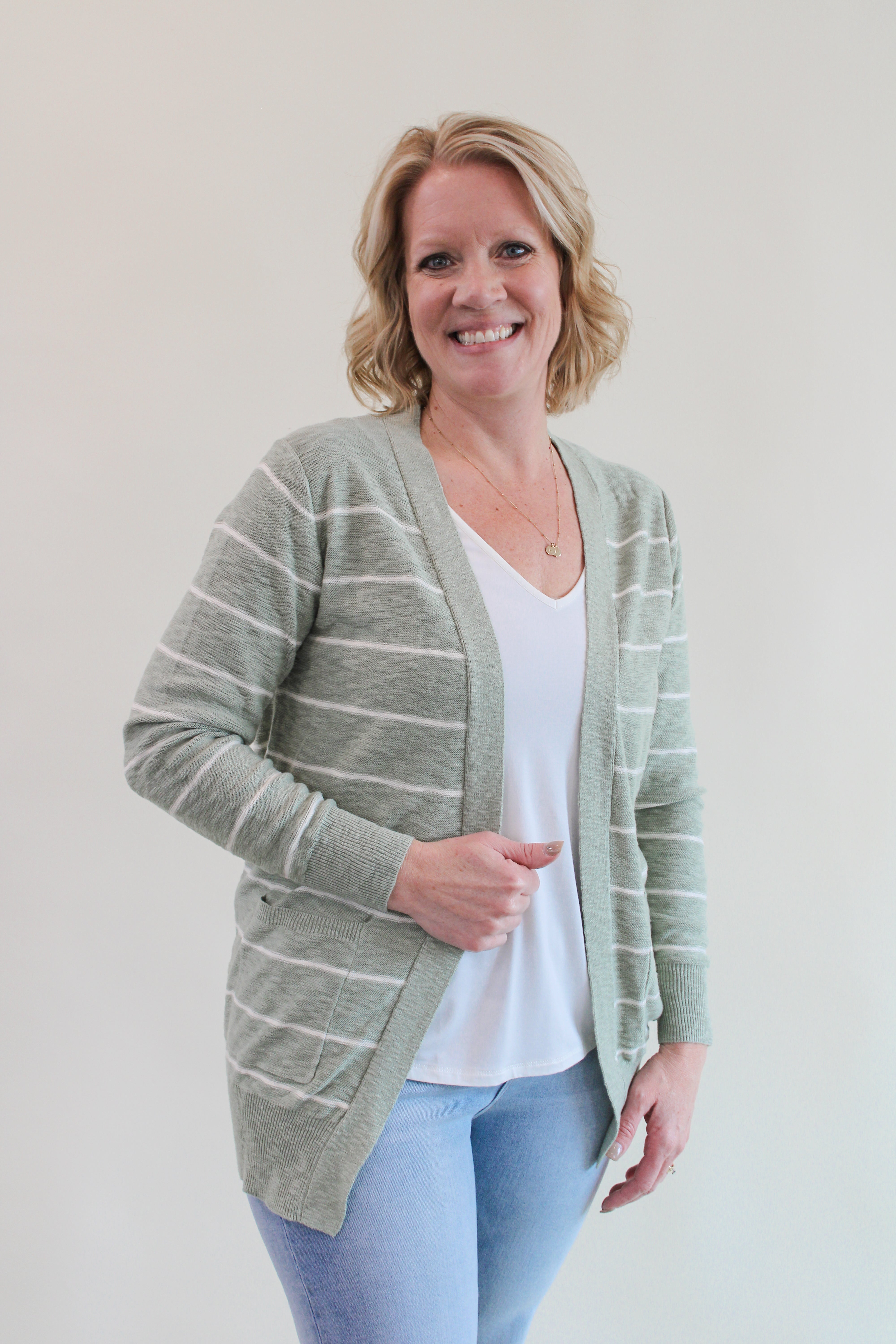 Stay warm and stylish with the MOLLIE STRIPED CARDIGAN. Made with a classic cotton slub material, this cardigan features a playful striped design and convenient pockets. Perfect for any casual occasion, this cardigan is 60% cotton and 40% viscose, providing both comfort and durability.