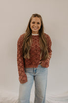 Stay comfortable with this sweater, featuring a relaxed fit, rounded neckline, and long sleeves. Its ribbed bottom band and cuffs add an extra touch of comfort, while the cropped length keeps you on trend. True to size for the perfect fit.