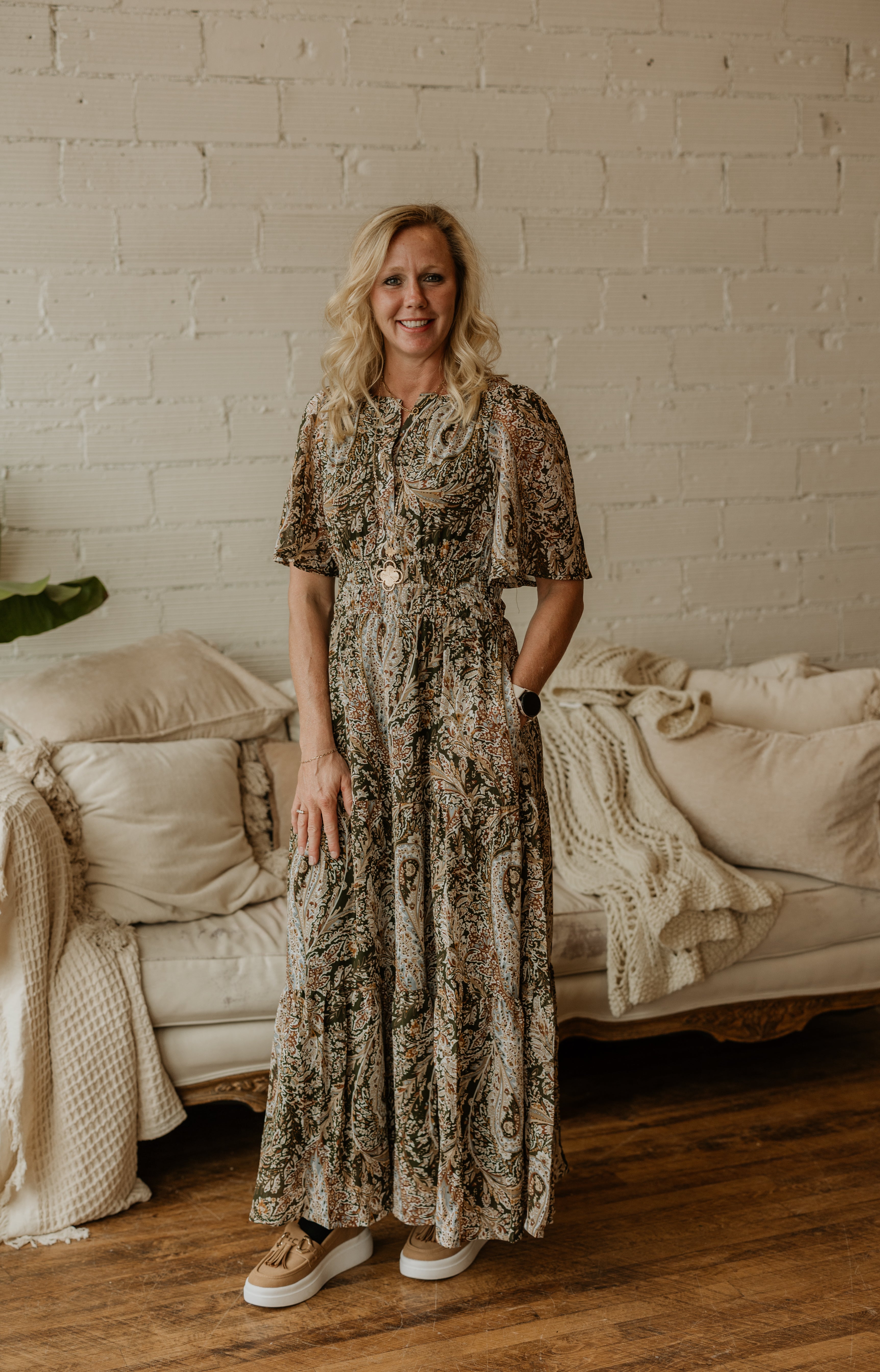 Step into effortless style with the RACHAEL Tiered Maxi Dress. Featuring a vibrant paisley print, this woven dress flows beautifully with a flattering tiered design. An elastic waistband ensures a comfy, perfectly fitted silhouette, while handy pockets add a touch of practicality. Perfect for twirling through your day with playful elegance!
