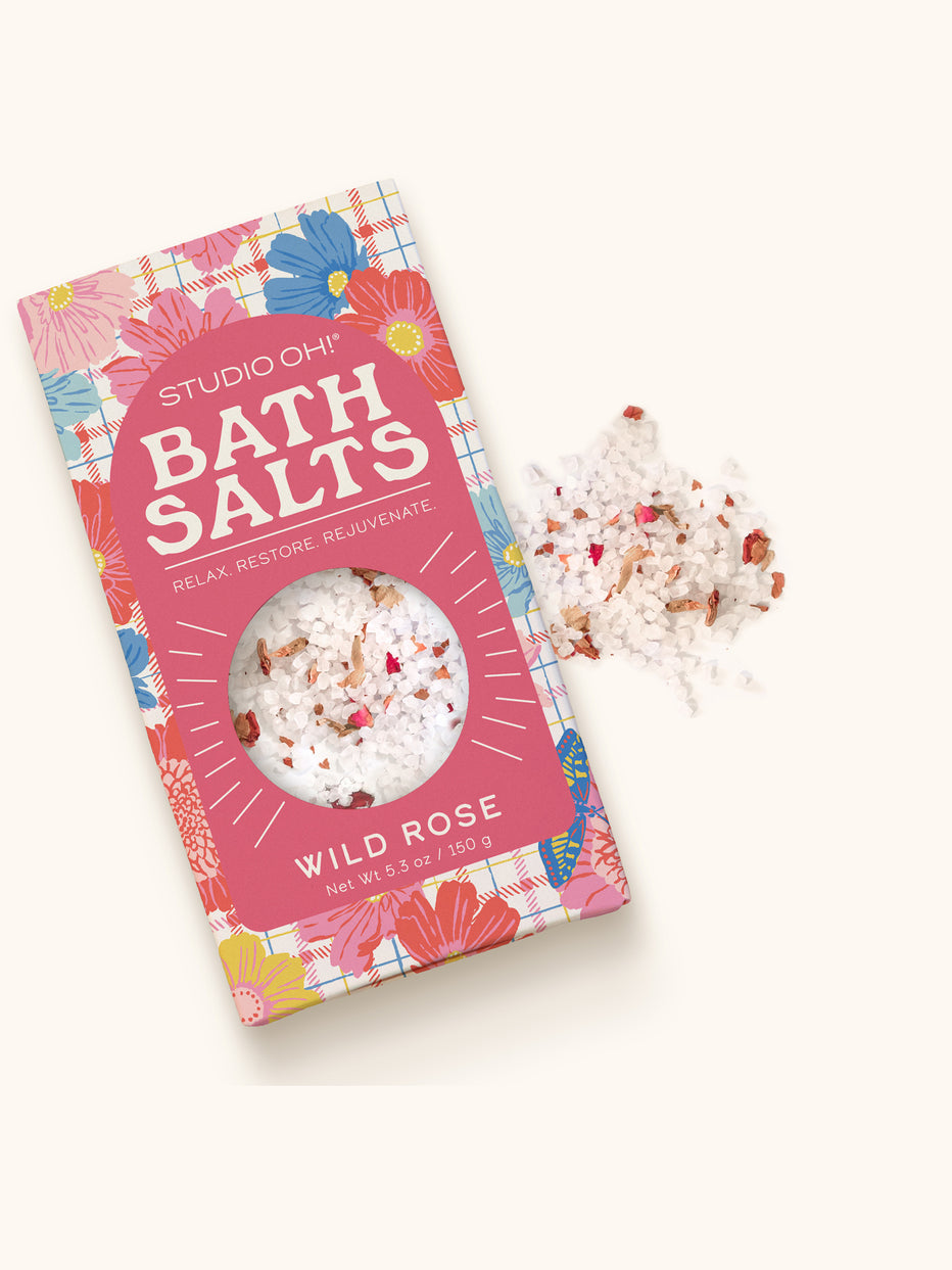 Enjoy a relaxing bath with Scented Bath Salts from Studio Oh! The artfully designed packets contain salts for one or two baths. The bath salts dissolve in warm water and provide a comforting soak, while the calming fragrances encourage relaxation and soothe the senses.