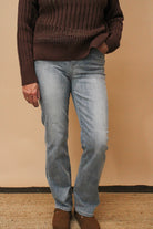 Step into comfort and style with the Taylor High Rise Dad Jean. Crafted in a medium blue wash, these jeans feature a relaxed dad fit with a flattering high rise and a 32" inseam. Made from a stretchy blend of cotton, polyester, and spandex, they offer all-day comfort and a perfect fit with a classic stitched design and easy zipper fly. Known for running generous, these jeans invite you to size down for the best fit. Add a playful edge to your wardrobe with effortless cool and a touch of vintage charm.