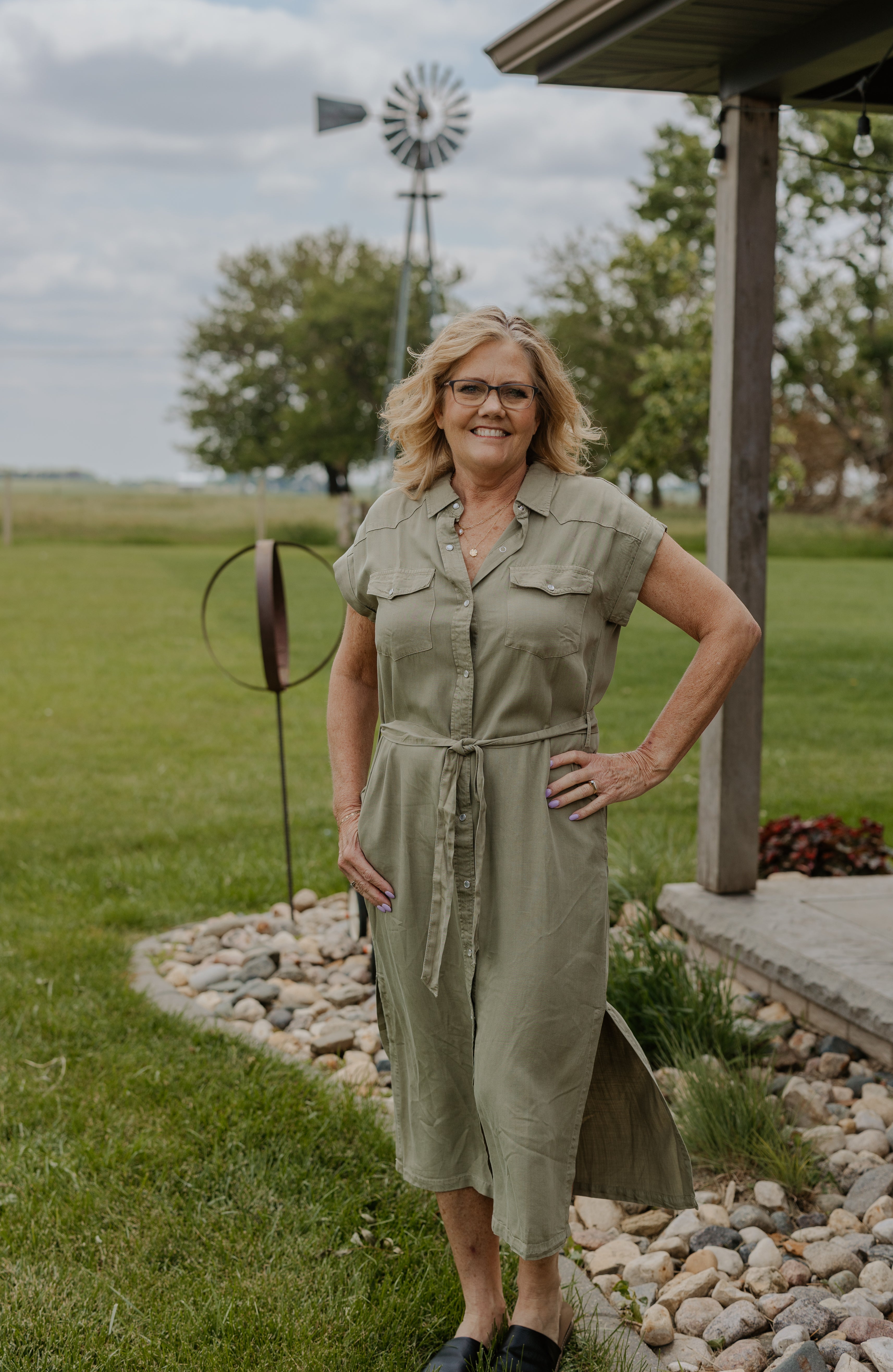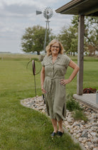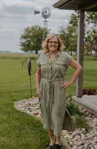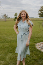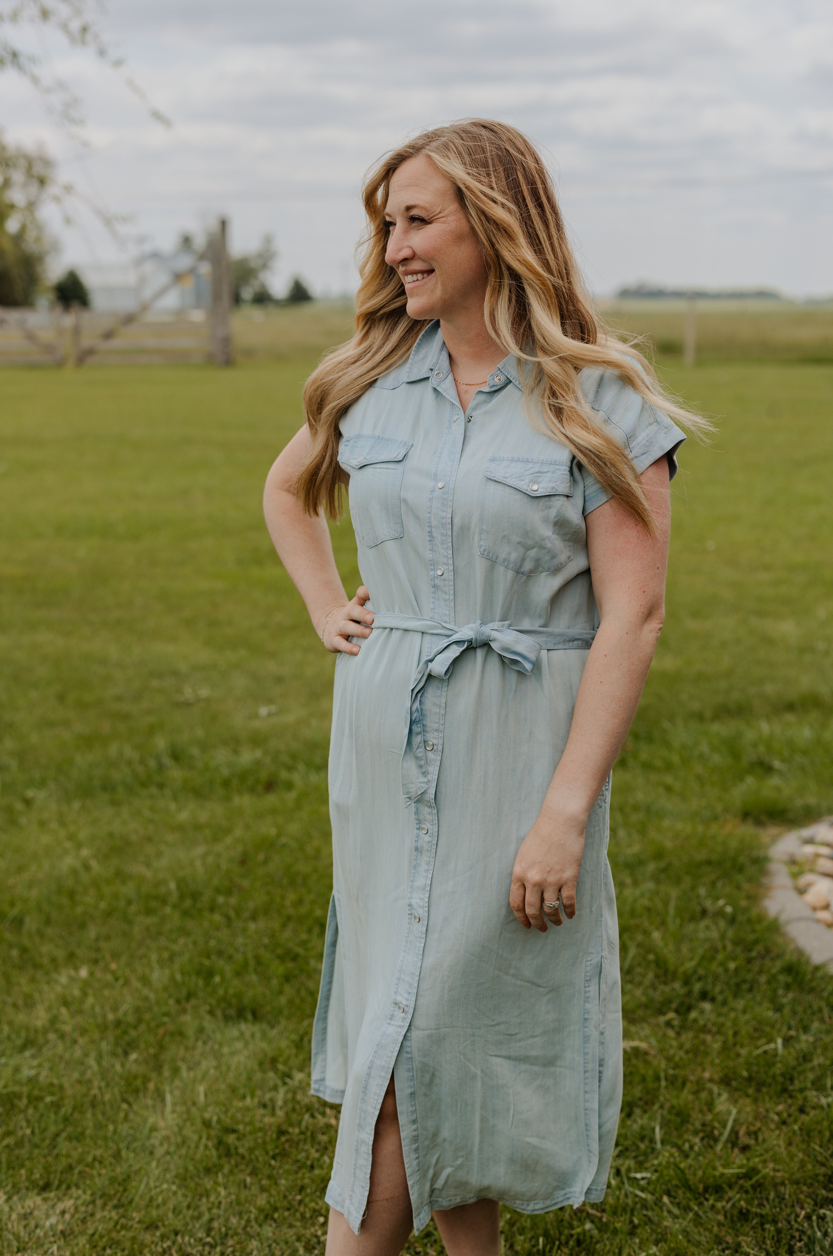 Flattering waist tie and side slit details make every day midi dress an easy, effortless option.
